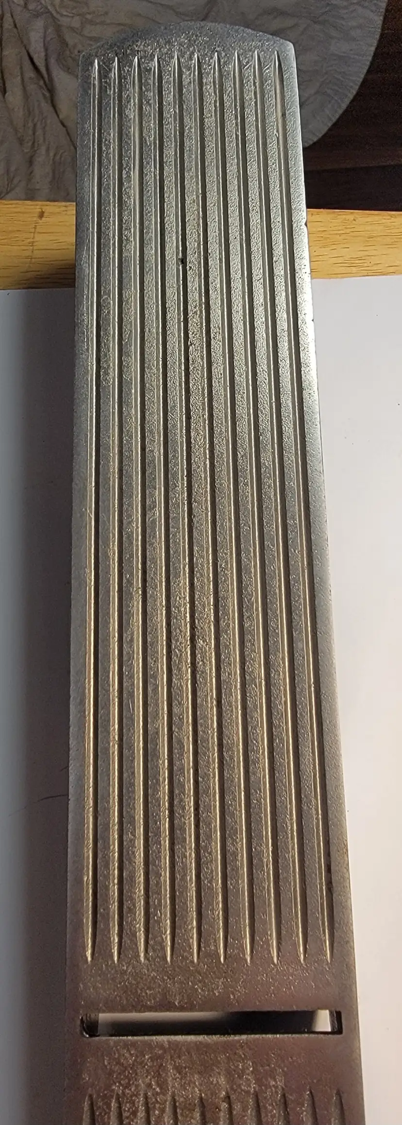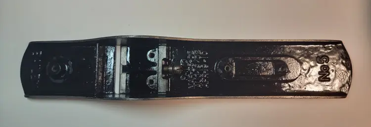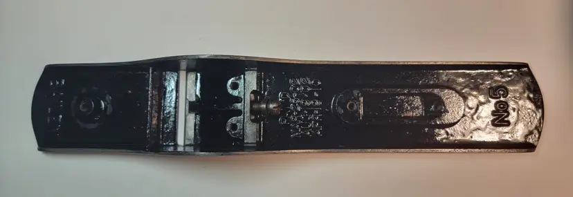 UP for sale is a really nice Stanley #5 Type 11 Hand Plane. It has the corrugated sole. It has the 3 patent dates behind the frog and small 1" Brass adj. nut. I have done a partial restoration on it. I have done the sides, lapped the sole and sharpened the iron going through the grits up to 8000 and it is super sharp. The Japanning was very spotty on it so I removed it and re-Japanned it using Stanley's original factory recipe and baking it 5 times, I think it looks great. The rosewood tote and knob are in great shape and have no cracks or chips. The iron has the V logo and it is very sharp not worn or pitted like you see a lot. The iron has good length and is sharp. Look at the pictures for best description