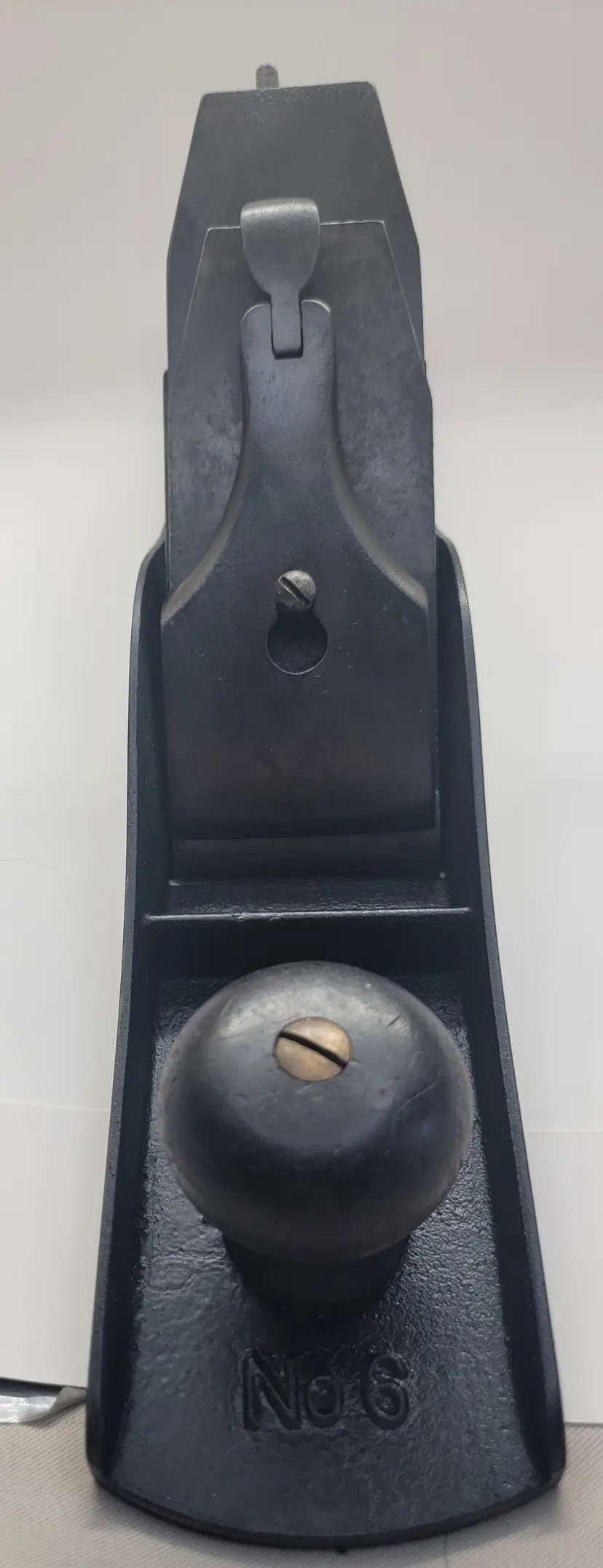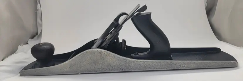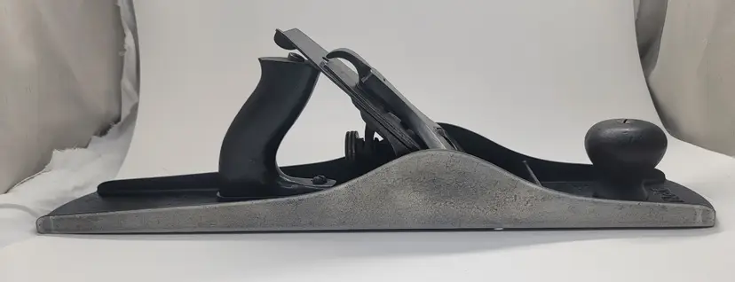 Up for sale is a nice Stanley #6 type 7 hand plane. It has the 3 pat. dates on the lateral adj. lever , S casting marks on the bed and lever cap . It has a nib on the back of the frog as will see on a type 7 that is missing the S casting mark. No Bailey info inside the brass adj. nut. It has the Q logo on the iron. This plane is in great shape and has been flattened and the blade has been sharpened. I have also lapped the chip breaker to fit the iron. The Japanning was very spotty on it so I stripped it off and paint it with 5 coats of Ford high heat engine paint. The tote and knob are crack free. The tote has had the horn shaved back as you will see on a lot of there old planes. Alaska and Hawaii message me to work out shipping.