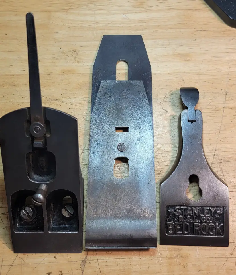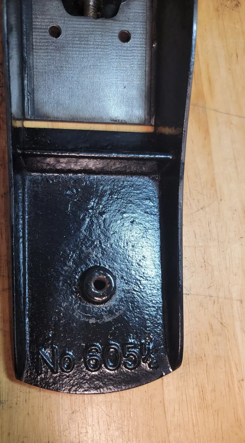 Up for sale is a super nice Stanley 605 1/2 Bedrock type 3 Plane. This one has the corrugated sole and it's in great shape, no pitting or chips, or marks. The mouth is clean with no cracks or chips. The tote and knob are crack free and show their original dark rosewood patina. The iron has the Q logo and a lot of iron left. The Japanning was very spotty so I stripped it off and Sprayed painted it with 5 coats of Rust -Oleum High Heat Ultra . I think it looks great. The lever cap has 3 lines and B casting mark on the back. The frog adj. lever has 1 pat.d on it. Judging from the sole, iron and tote and knob, I don't think this plane has seen much use. Alaska and Hawaii message me to work out shipping cost.