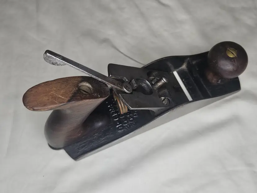 Up for sale is a classic Stanley No. 4 Type 11 Smoothing Plane, manufactured between 1910 and 1918. This plane is a fine example from the golden era of Stanley toolmaking, known for its excellent manufacturing quality and performance. Only apology is the lever cap has a minor chip as shown in the photos. Iron is in good shape and will need a fresh sharpening.
