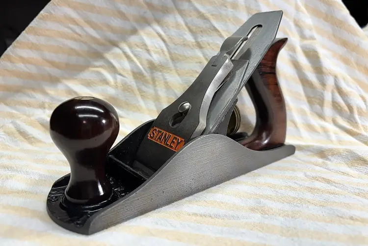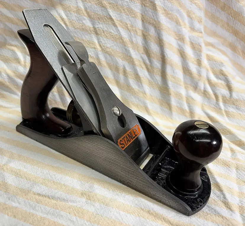This Stanley No 4, type 15 has been restored and finely tuned to be a great smoother. The sole of the plane has been lapped flat on a zen-wu diamond plate making it flat enough to take fine shavings. The blade and chip-breaker have been perfectly fitted, preventing any clogging of the mouth with shavings. The back of the iron has been flattened and polished and brought to a razor sharp edge on a 3000 grit diamond stone. The plane still has its original rosewood furniture completely intact with no breaks or repairs (pretty rare to find).