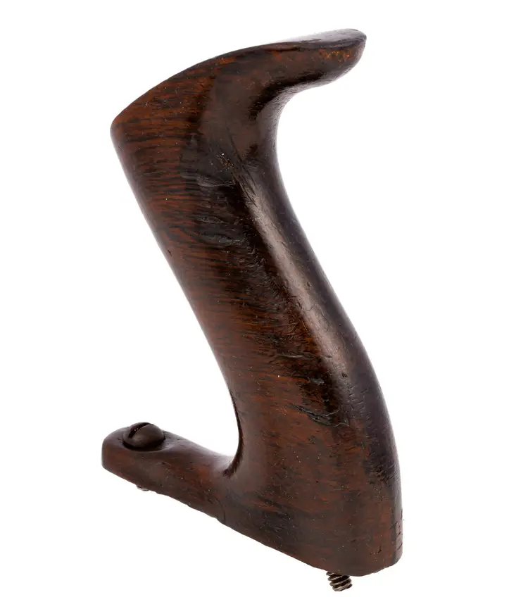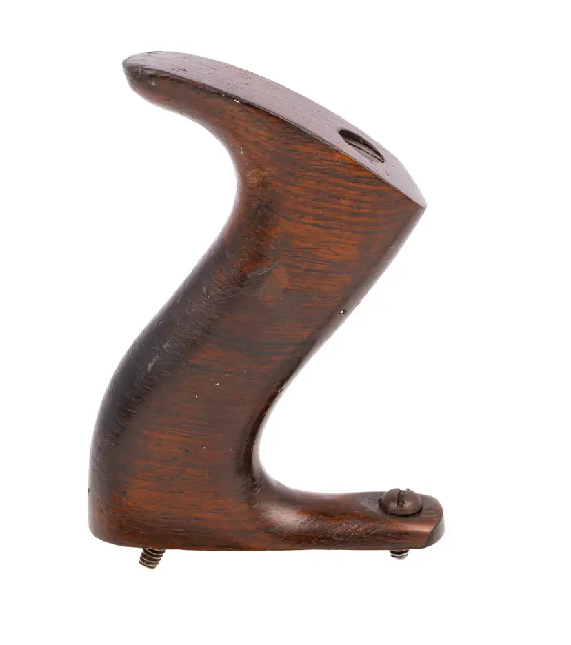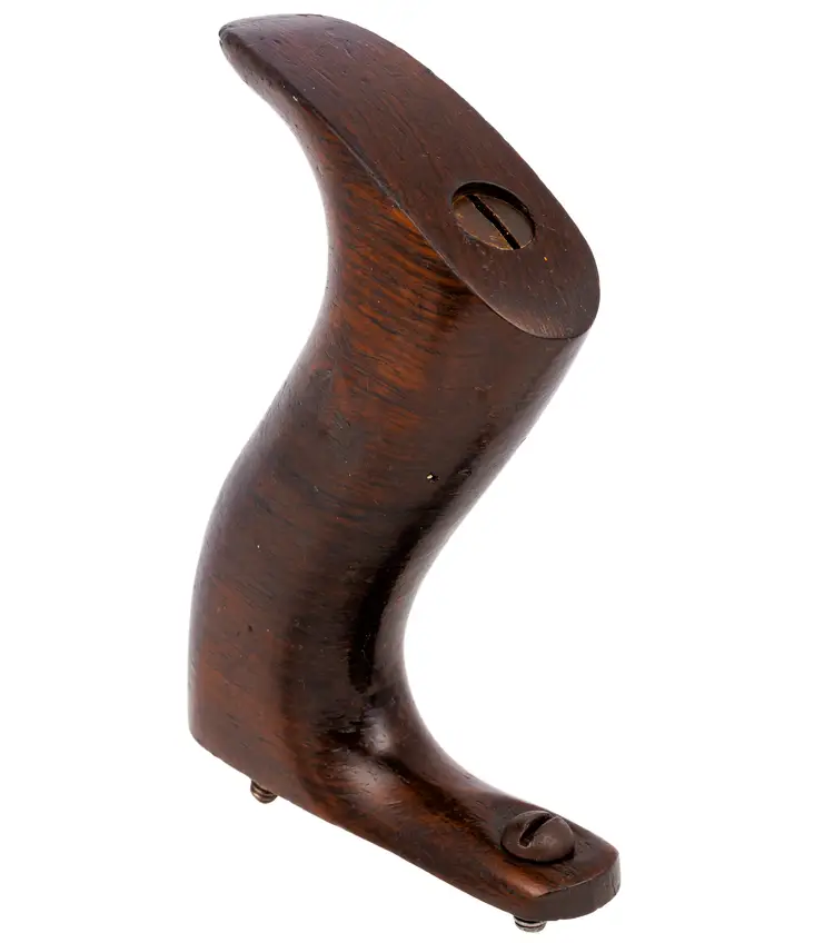 A Good Plus rosewood handle for stanley's vintage hand planes. It was salvaged from a type 12 plane and will also work with other vintages. It is the larger size which fits plane numbers 4-1/2, 4-1/2C, 5, 5C, 5-1/2, 5-1/2C, 6, 6C, 7, 7C, 8, 8C, 604-1/2 - 608, G5 - G8, 10, 52. It includes the original screws as well. The last photo of the handle box is for reference only. There is a small chunk missing where the thumb rests on a right-handed user.