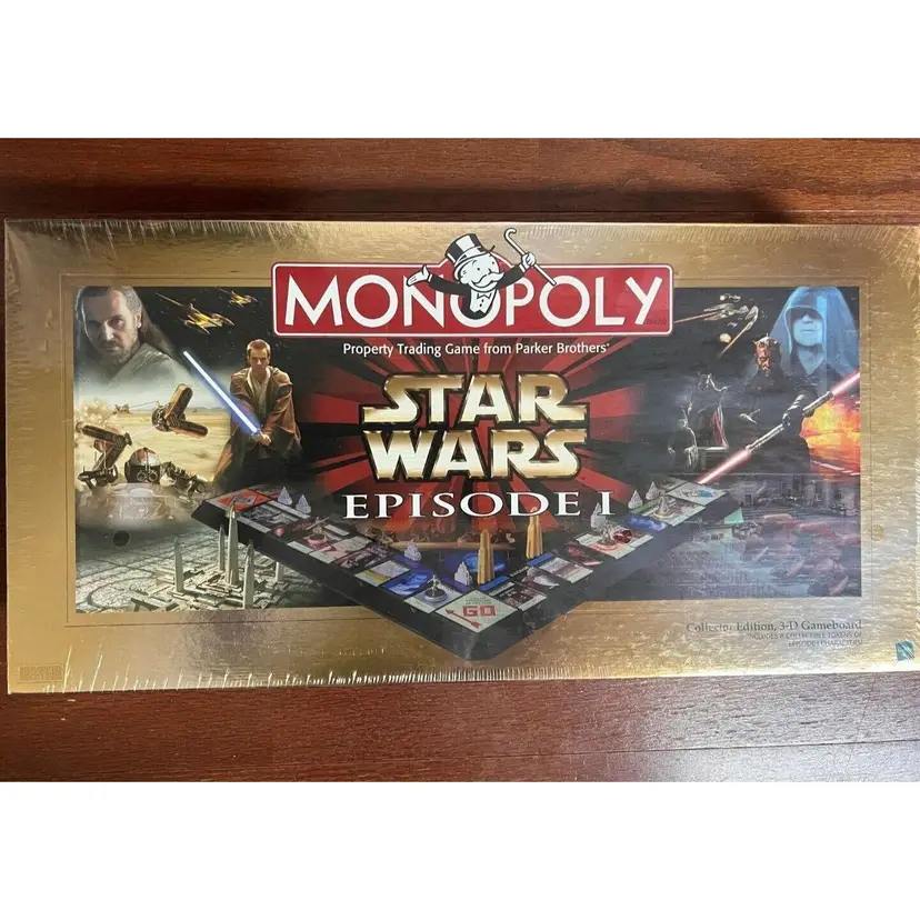 Get ready to travel to a galaxy far, far away with the STAR WARS Episode 1 Monopoly Collector Edition 3-D Board Game. This complete game, released in 1999, is still sealed and ready for you to enjoy. With the board featuring iconic locations from the Star Wars universe and unique game pieces representing characters from the movies, this board game is perfect for 2 or more players. Don't miss out on the chance to own a piece of Star Wars history.