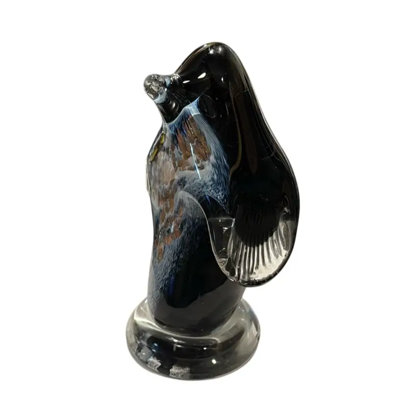 Stately Penguin Chonk - Midnight Blue, Snowstorm White, Aventurine Gold Penguin Art Glass Signed “Lubos Biot” - 6”