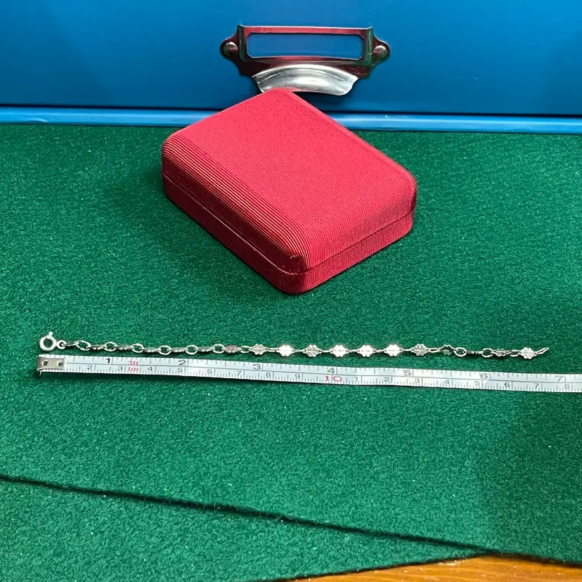 This charming bracelet is in good condition. It is tested and marked as Sterling silver and also marked indicating it was made in Italy. The bracelet is 6-1/2 inches long.