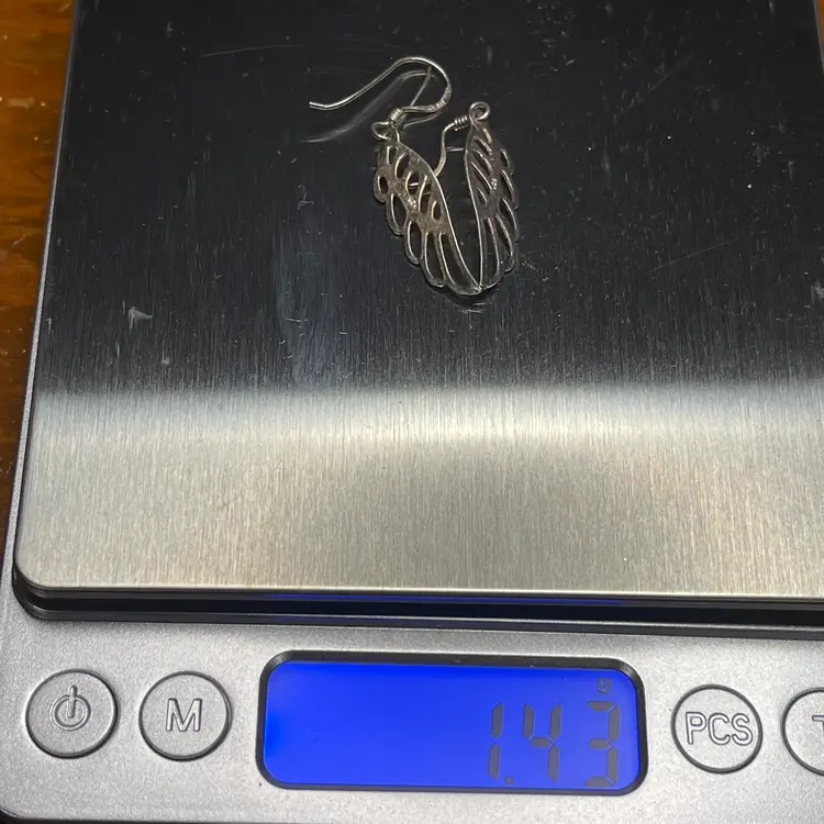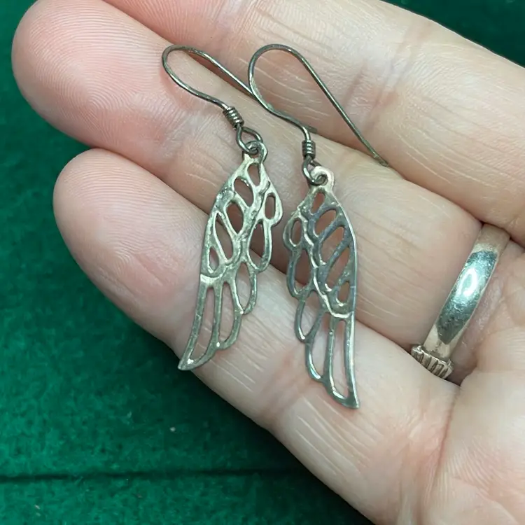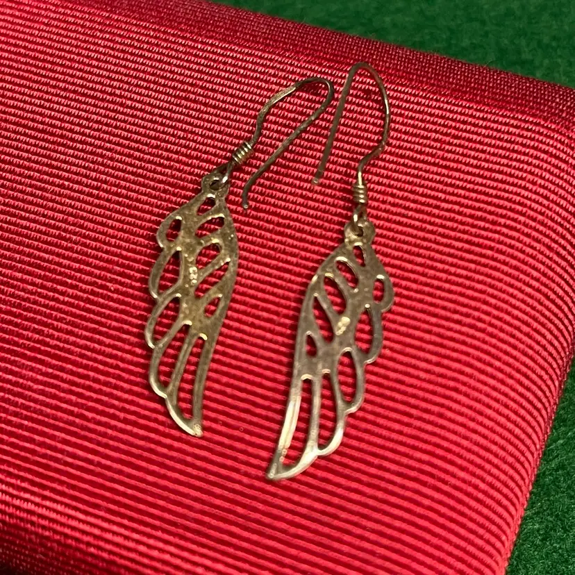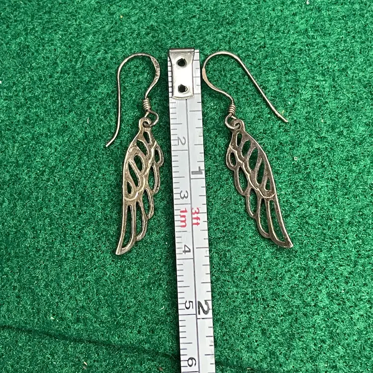 These whimsical earrings are in good condition though do have some tarnish. These are tested and marked as 925 sterling silver. They are each about 1-1/2 inches long from the highest point of the hook.