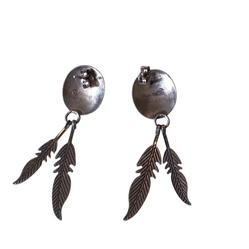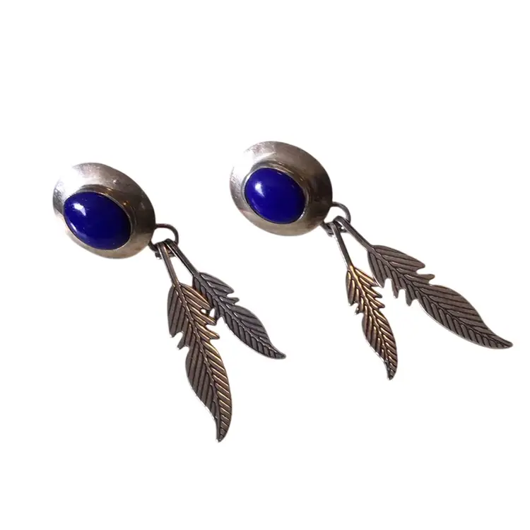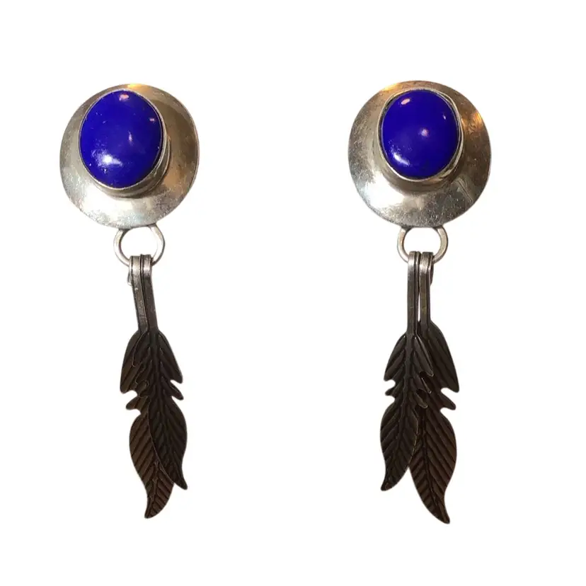 Blue cabochon & 925 southwestern style with feather dangles. 2” drop. #626