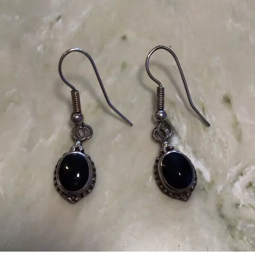 Onyx cabochon set in sterling, lovely condition. #620