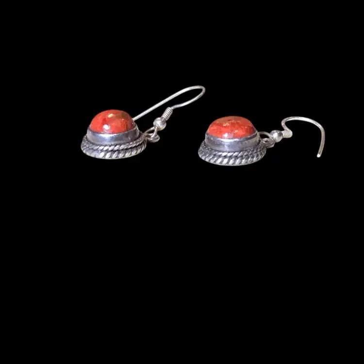 Native American Dean Sandoval Jr, Navajo, Marked SI 925 orange shell cabochon with braided trim. Very beautiful. #624