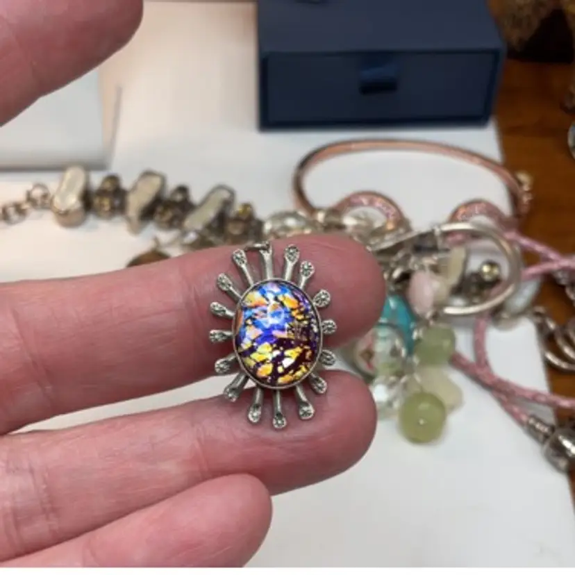 Welcome to our shop of mostly pre-owned and sometimes new jewelry treasures, trinket boxes, compacts - sometimes art and glass. Please follow us so you're in the know when we go live or add new items. Our curated beauties include a large selection of vintage pieces as well as many contemporary items. We also craft and design our own fun costume (and some fine) jewelry pieces, bookmarks, digital art and more in our small studio.