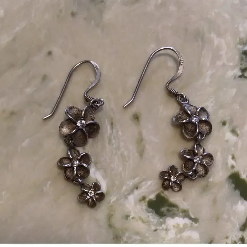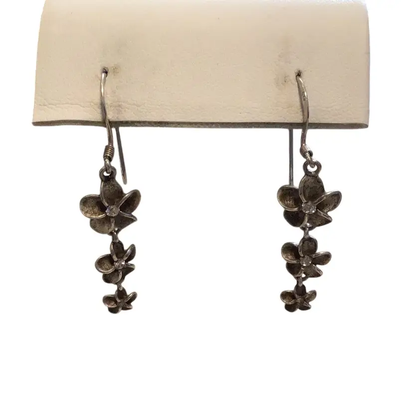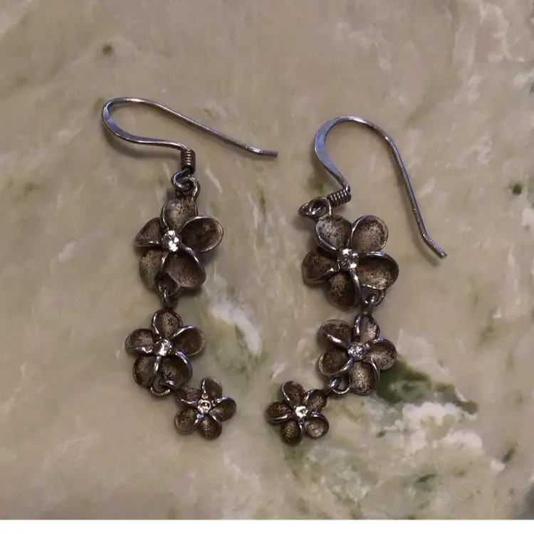 Marked 925 K flower dangles with CZ centers. #621