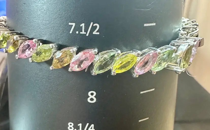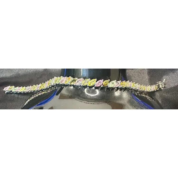 Sterling Silver 925 DJoy Multi Colored Stone Tennis Bracelet 7 3/4 Inches Tested