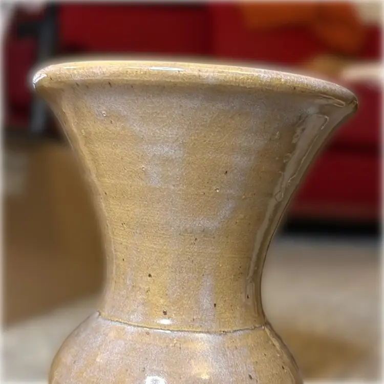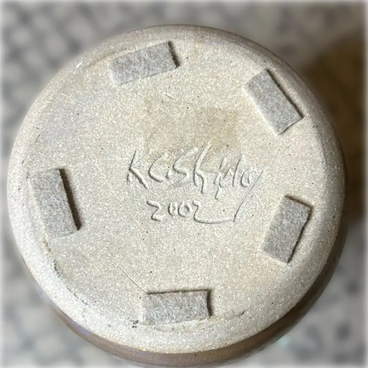 2002 Hand-Signed KC Shirley Studio Pottery Large Fluted Vase. 9” tall, 5” in diameter at the bottom, and 7” in diameter at the top.