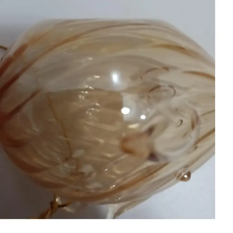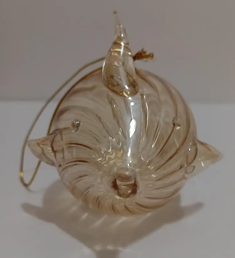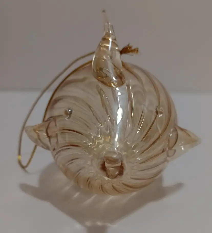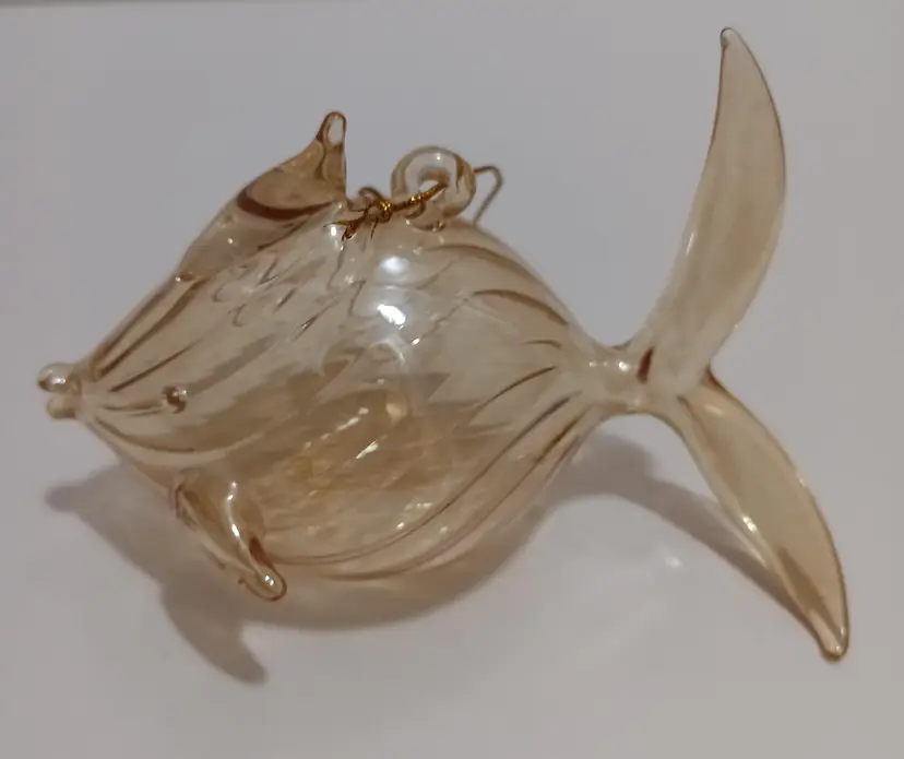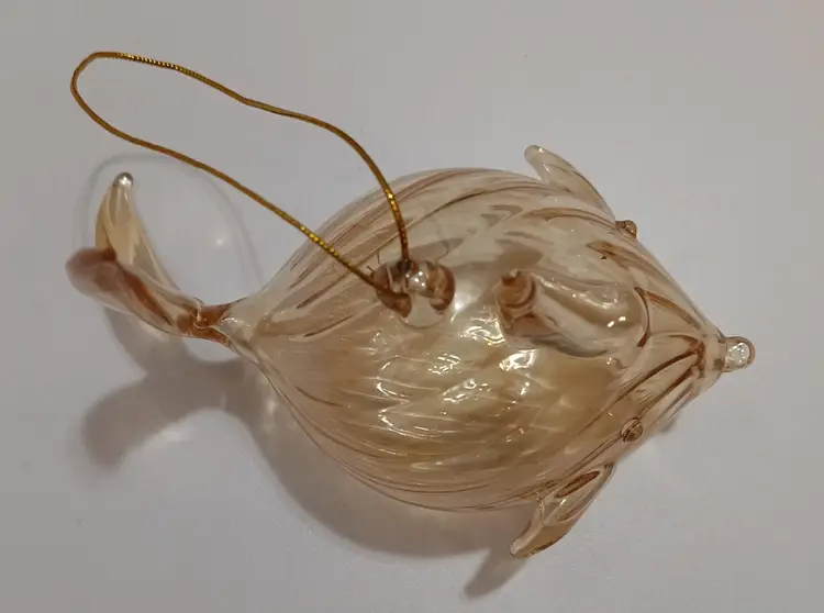 Charming Iridescent Peach Blown Glass Fish Ornament; flat bottom allows for shelf display too! Excellent condition; no chips or cracks; 5" L x 3" tall