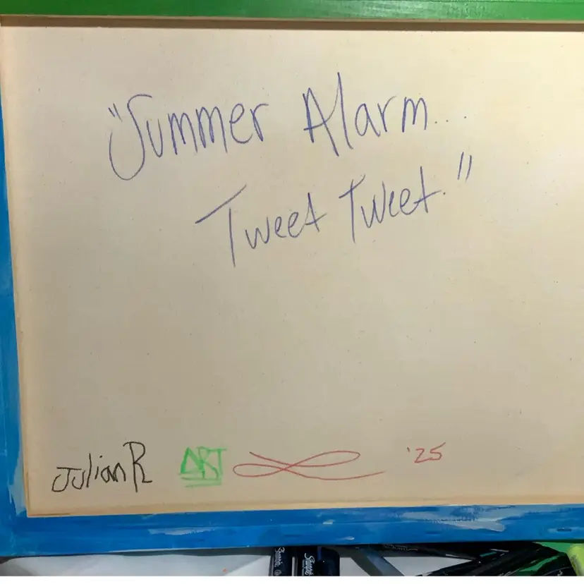 Mixed media painting on 20” by 16” canvas by KingJulianPlays. He is 9 years old. He loves Sonic and Mario Brothers games and movies. Julian is my Art Studio partner. We collaborate on these paintings. Signed
