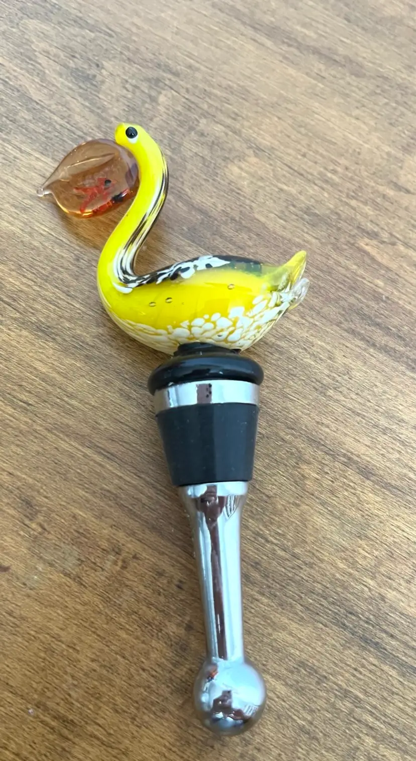 Super Cute Tropical Pelican Wine Bottle Glass Art Topper Stopper
