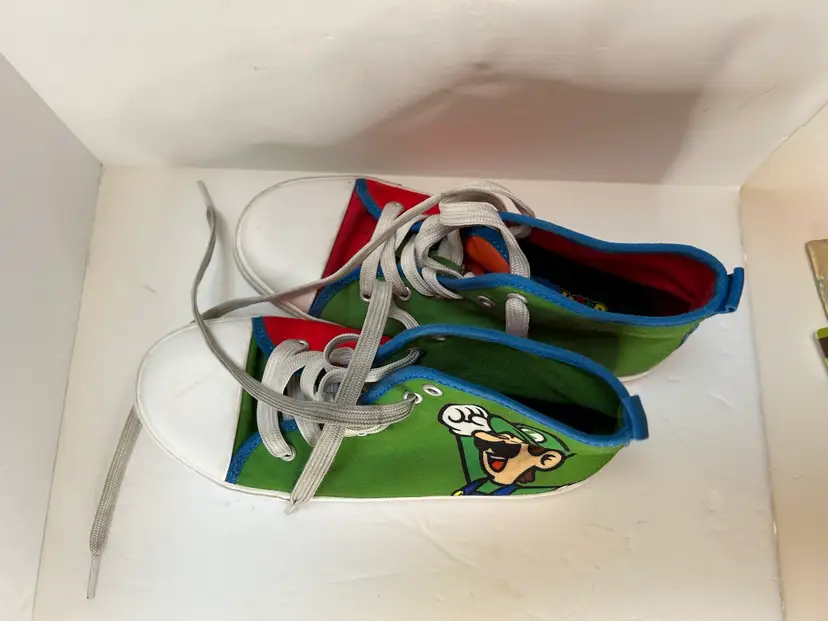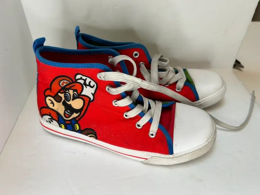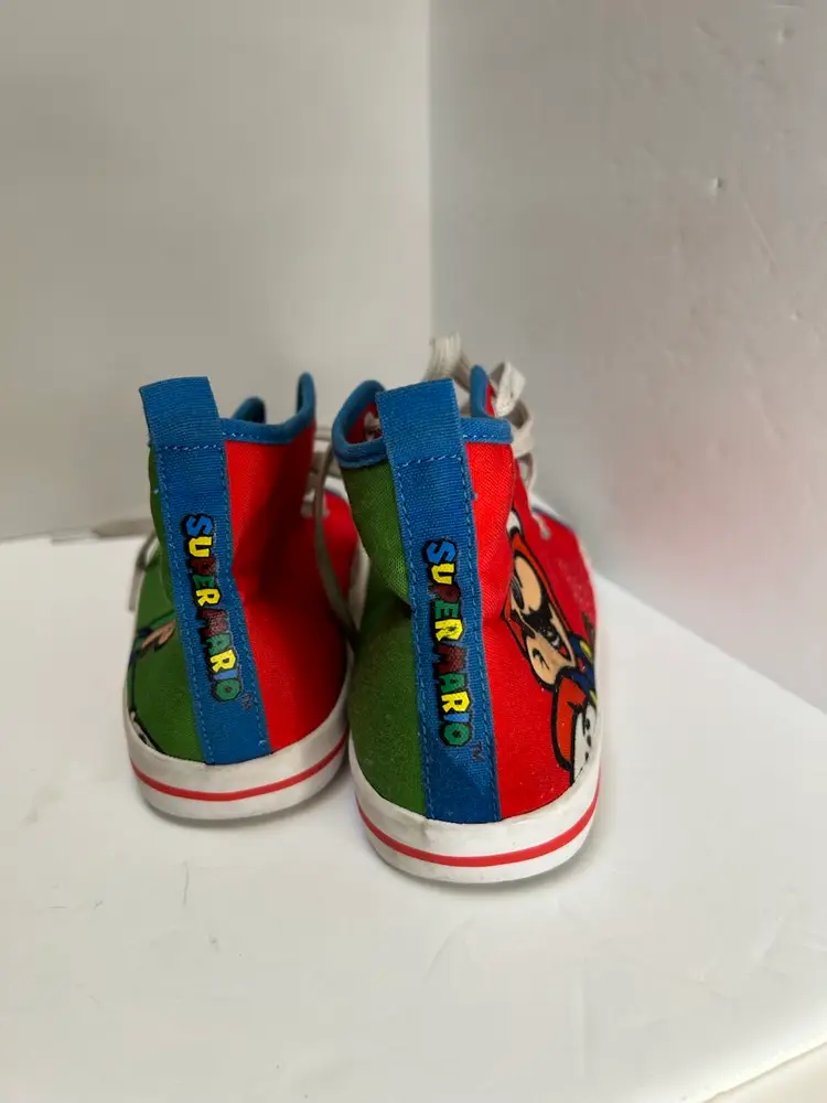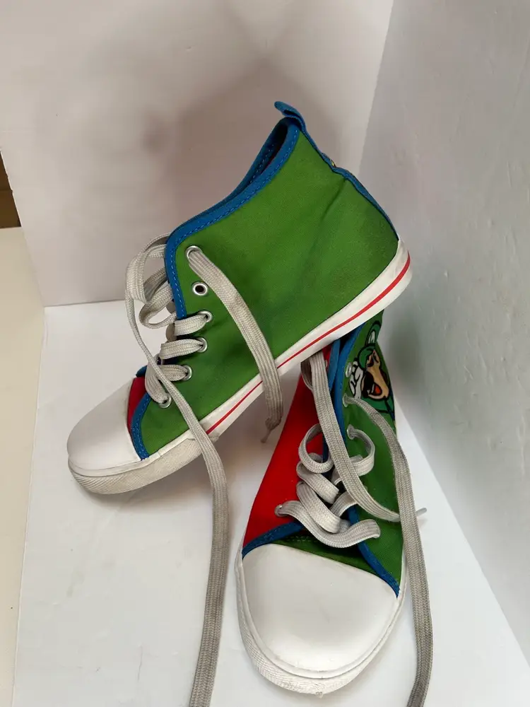 Get ready to level up your kid's shoe game with these Super Mario Brothers hi-top sneakers! Featuring iconic characters Mario, Luigi, and Yoshi, these lace-up sneakers are perfect for young gamers and fans of the classic Nintendo franchise. The colorful design is sure to catch the eye, with a multicolor upper made of durable polyester. These sneakers are perfect for a variety of activities, including walking, skateboarding, and basketball.