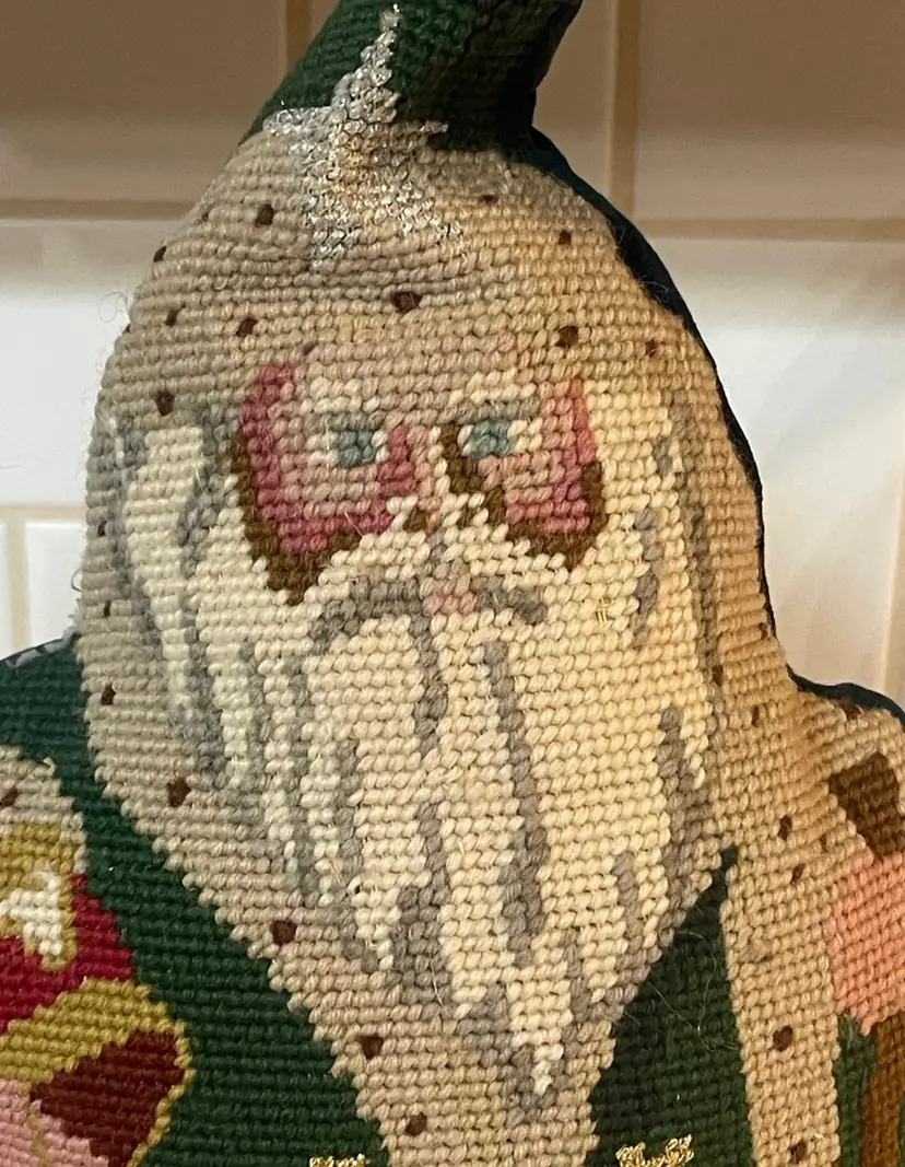 Tableaux Christmas Holiday Santa Needlepoint Figurine. Excellent condition. Beautiful!