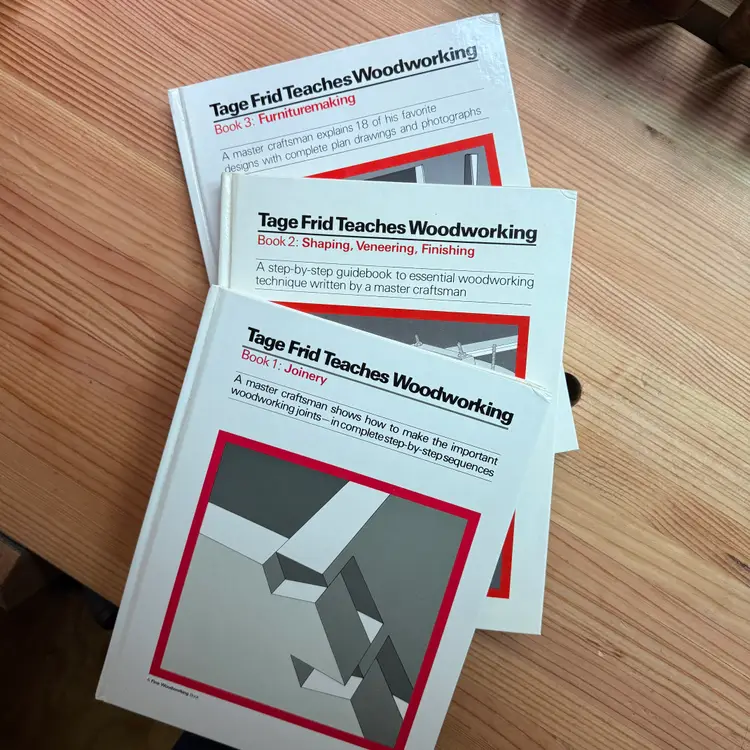 "Tage Frid was a Danish-born woodworker, educator and author who influenced the development of the studio furniture movement in the United States. His design work was often in the Danish-modern style, best known for his three legged stool and his publications." He was also an editor at Fine Woodworking magazine from 1975 to 2004.