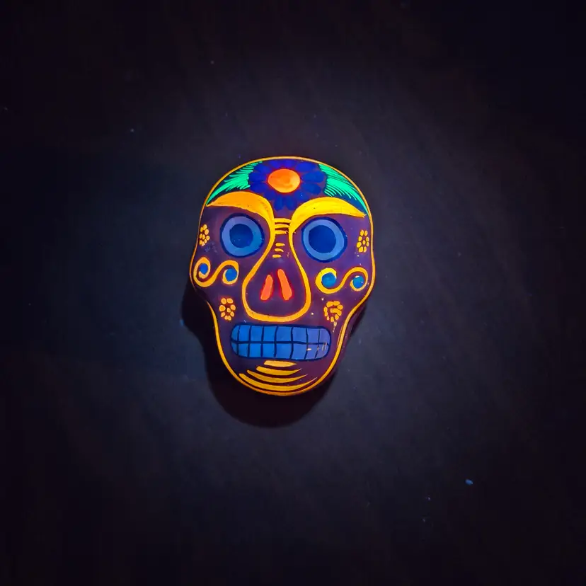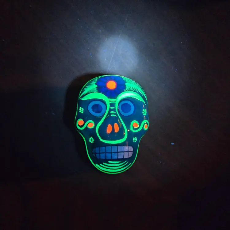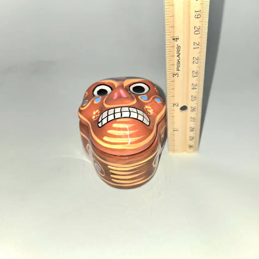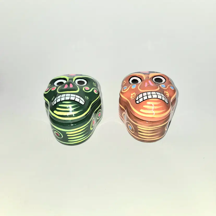 Authentic Mexican Talavera skulls. Great Halloween and Dios de los Muertos Decor and trinket boxes. Hand painted and marked. Glows!!