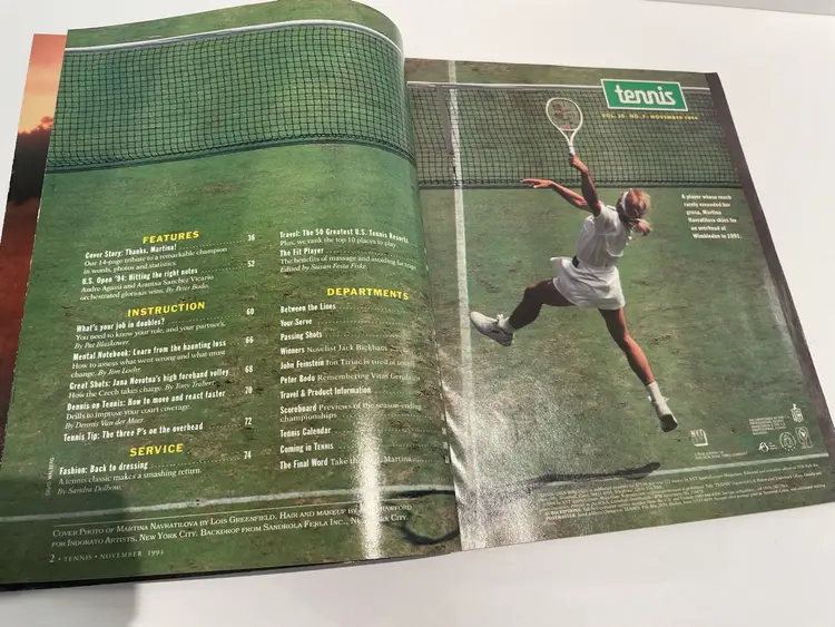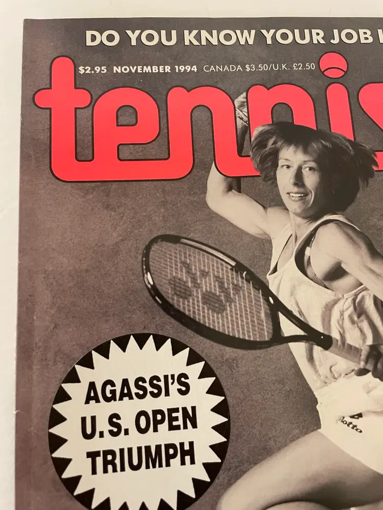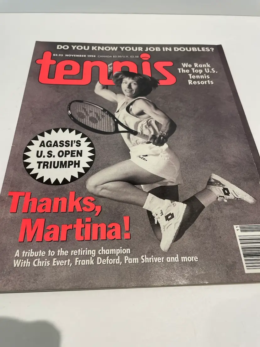 Tennis Magazine from November 1994 Tribute to Martina Navratilova and Andre Agassi’s US Open Triumph Great article on Martina’s success and dominance on court and Andre’s US Open win.