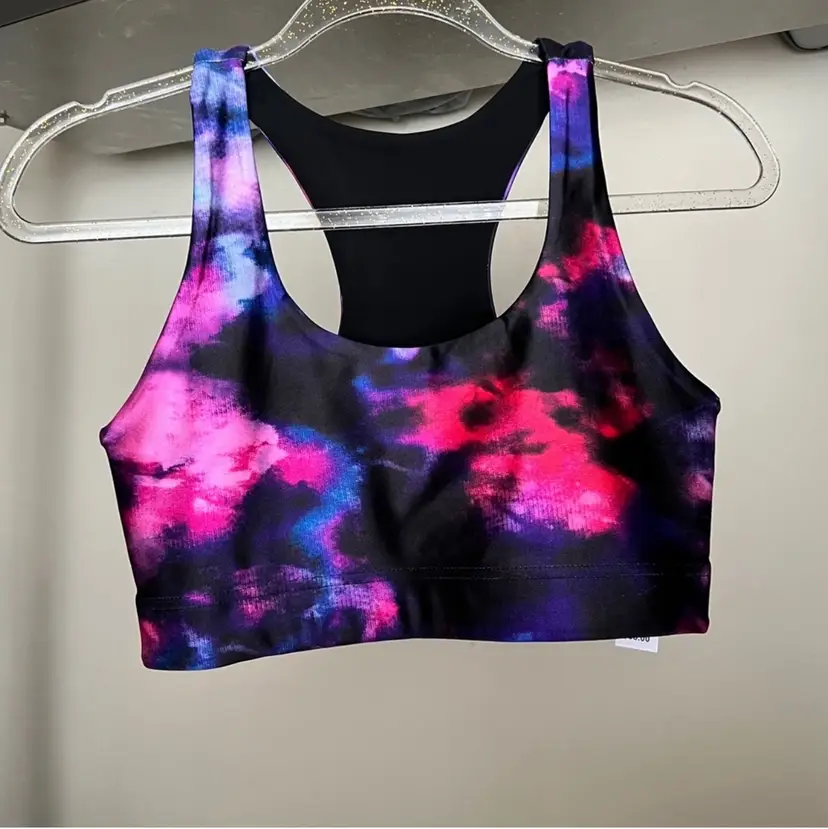 Fun Print. No padding- like galaxy print. In Blurred Lines Print Soft, Black with bright pink, blue and purple colors. Also with red splashes of color. Be hypnotized! Great brand. MSRP $65 😳