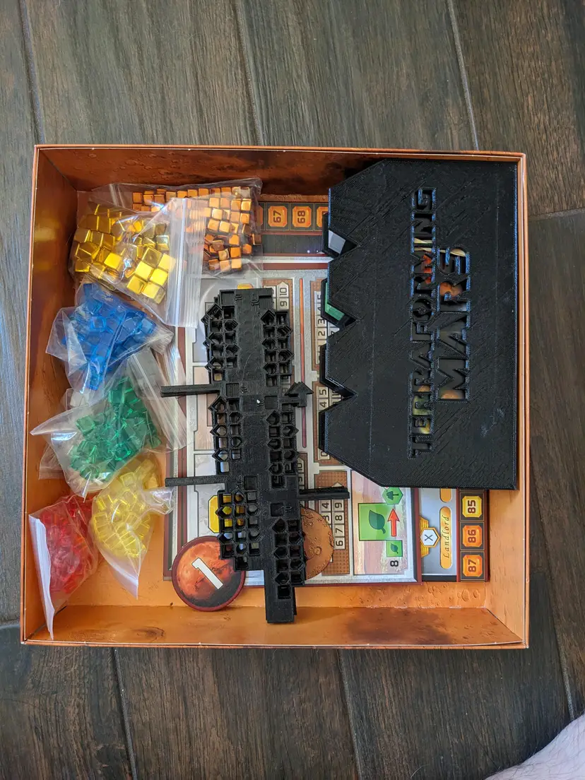 Modern classic Terraforming Mars plus the essential Prelude expansion. Includes custom 3D printed organizers and overlays (see pictures).