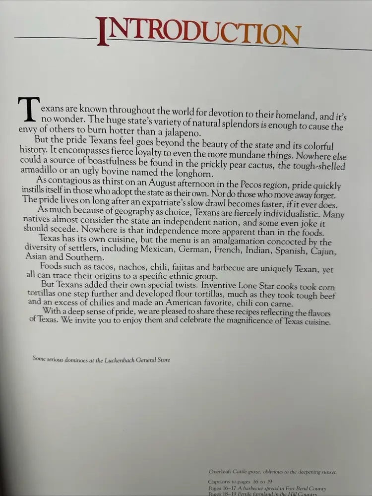 Texas The Beautiful Cookbook, this truly is a beautiful cookbook. Loaded with pictures of not only Texas food, but scenery and the people of Texas. 208 pages. No dust jacket included. Otherwise book is in very good condition. Clean, no rips, stains or writing on pages.