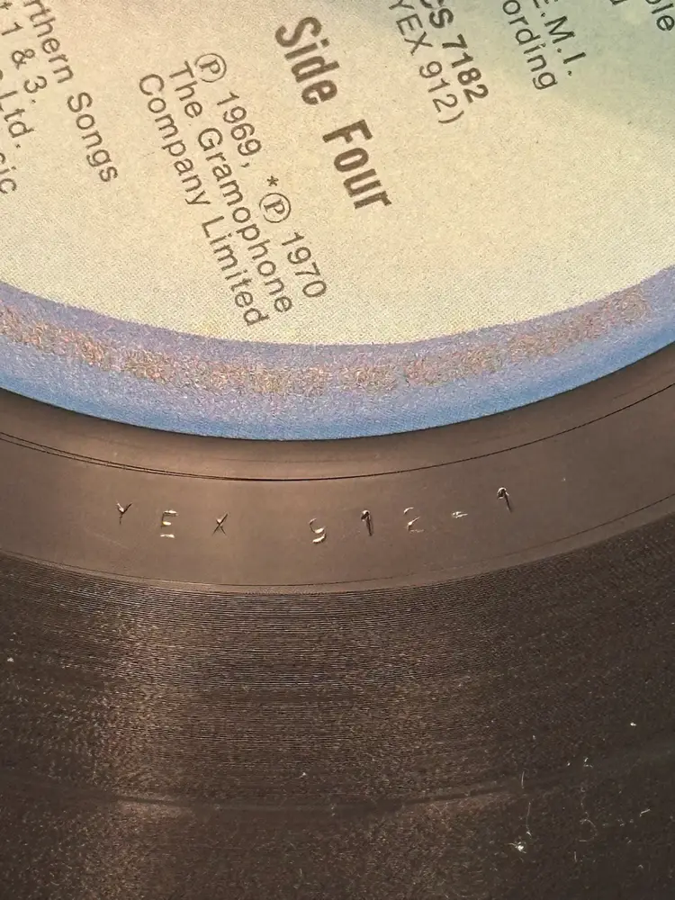 • First pressings from April 1973 usually show -1 or -2 on all sides.