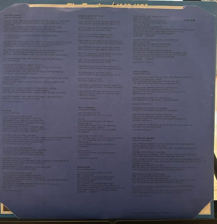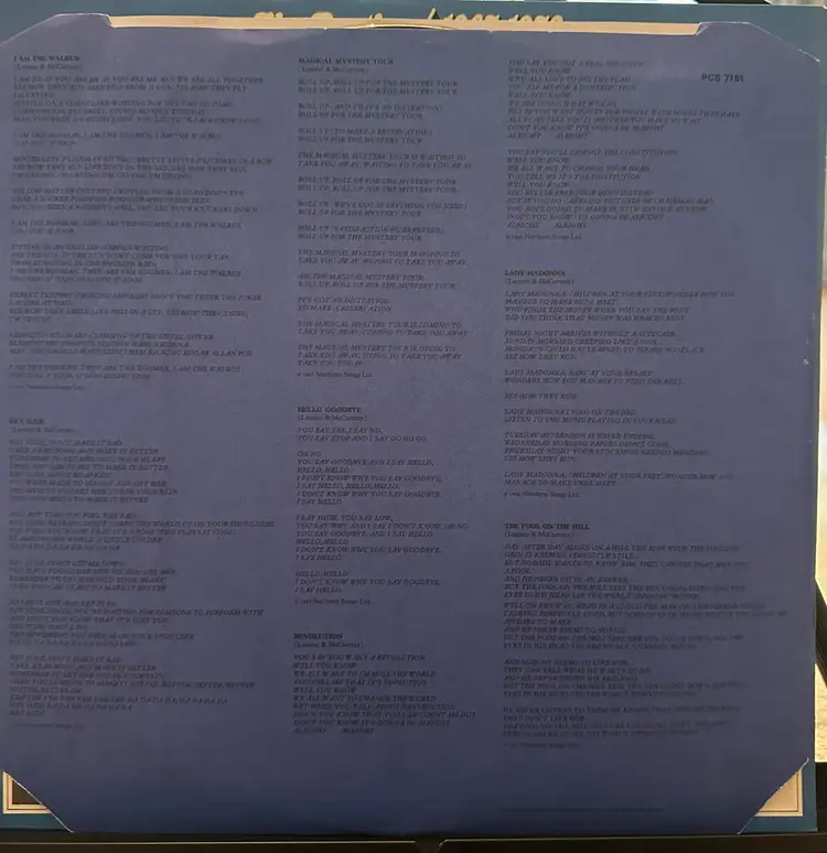 • Lyric inners: Present, in the correct dark blue with white print and catalog references (PCS 7181 / PCS 7182). These are original and often missing, so their presence adds collector value.