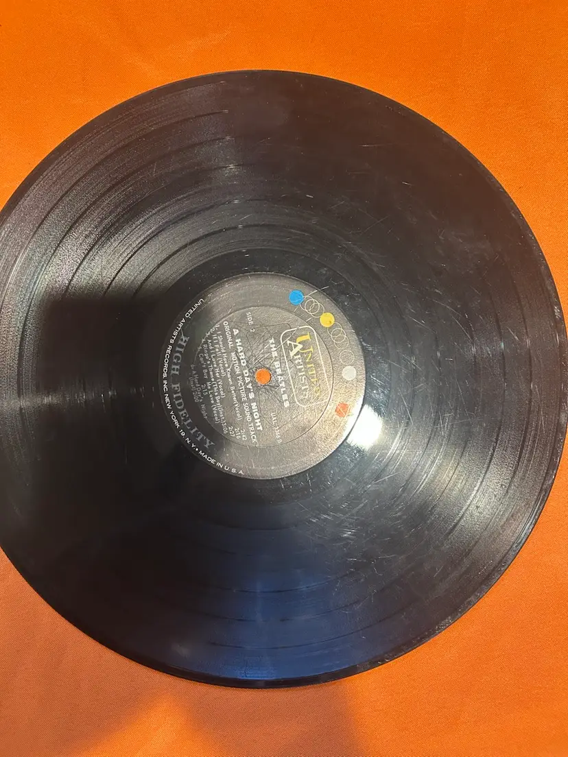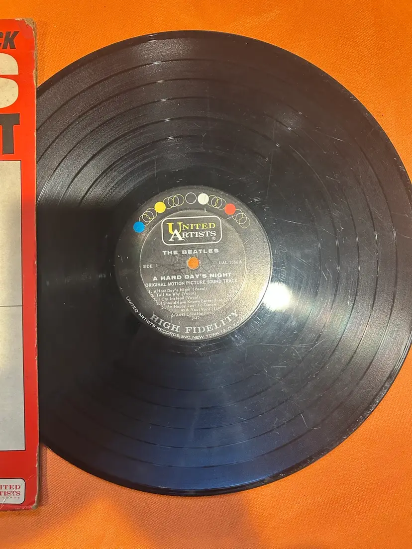 This vintage vinyl record is a classic LP by The Beatles, titled "A Hard Day's Night," released in 1964 on the United Artists Records label. The 12" vinyl record plays at 33 RPM and comes in a cardboard sleeve. The album features original cover art and is considered a must-have for fans of 1960s British Invasion music. This record captures the iconic sound of The Beatles in their prime, making it a valuable addition to any music collection.