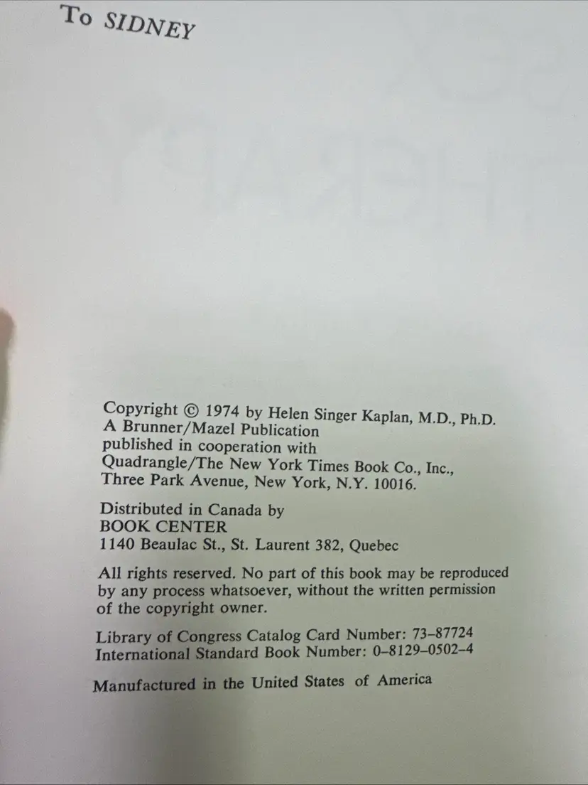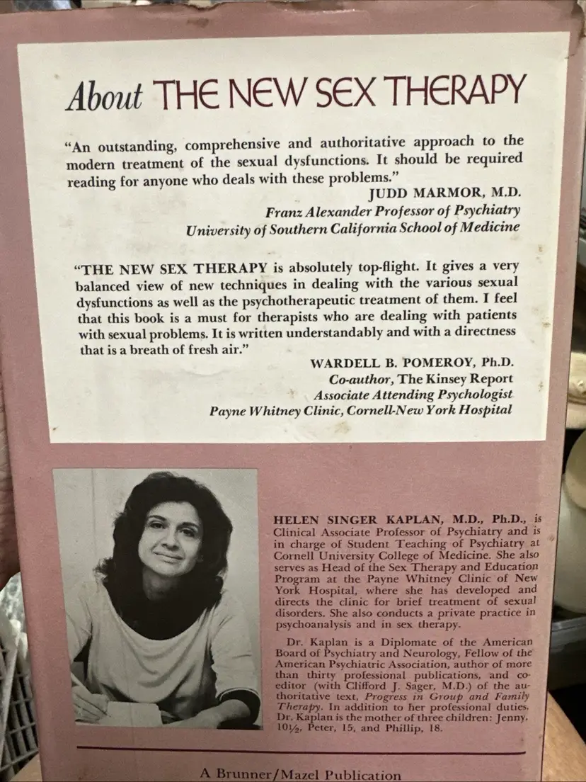 The New Sex Therapy by Helen Kaplan 1974 Hardcover