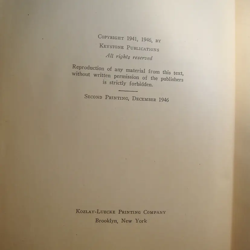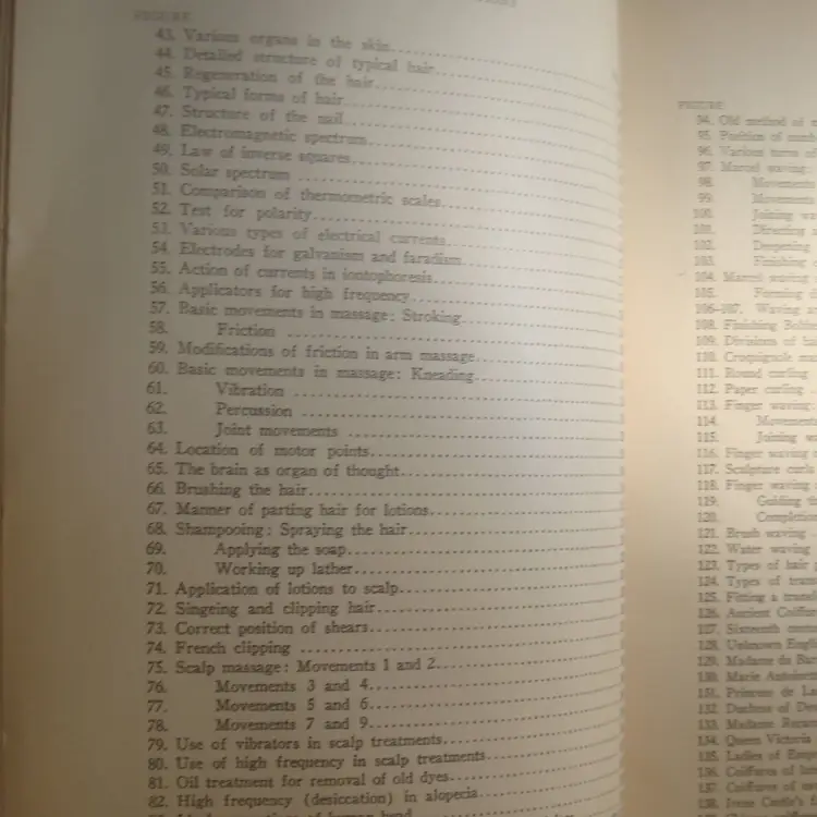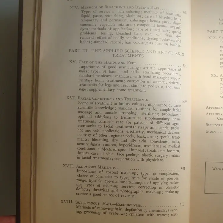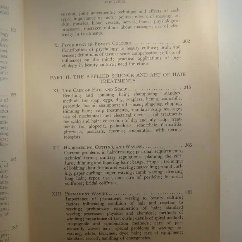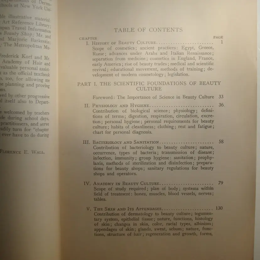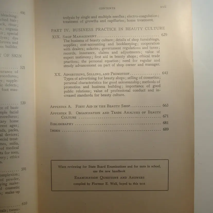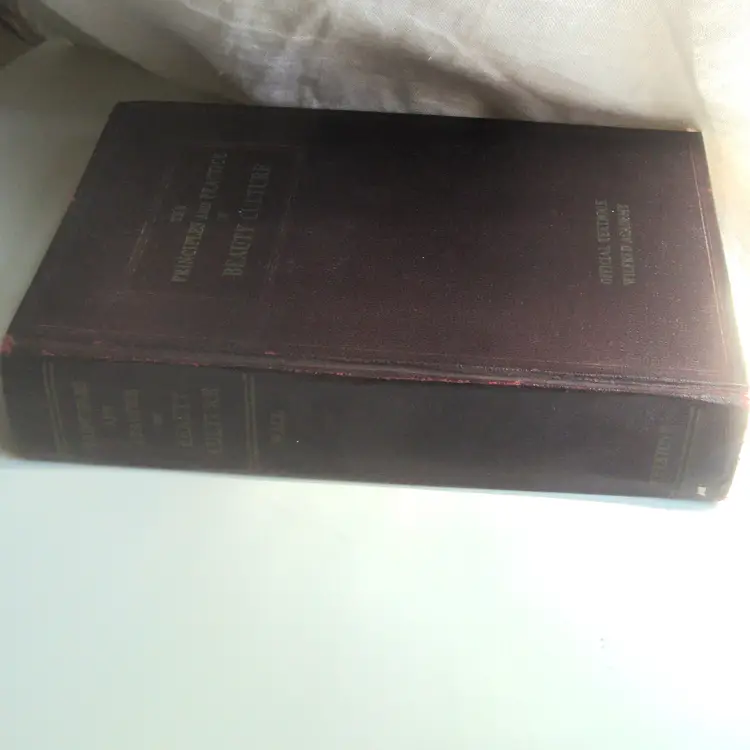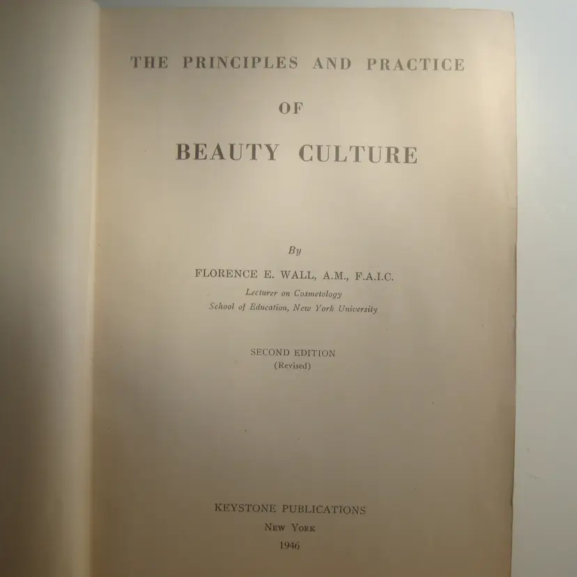 The Principles and Practices of Beauty Culture Official Textbook Wilfred Academy Second Edition (Revised) Keystone Publications, New York, 1946 Author: Florence E. Wall, A.M., F.A.L.C. Lecturer on Cosmetology School of Education, New York University First Female Medal Recipient of the Society of Cosmetic Chemists Discoloration appropriate for its age. Some binding wear. (please see photos) Spine in good condition. No marks. 661 pgs + Appendix A & B, Bibliography, Index.