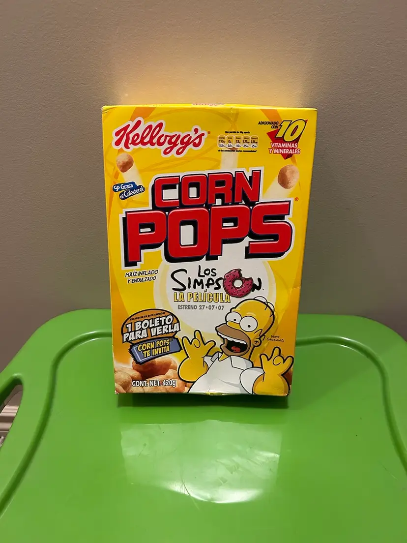 Empty box of Corn Pops cereal from Mexico 2007. Promotional from the release of the simpsons movie