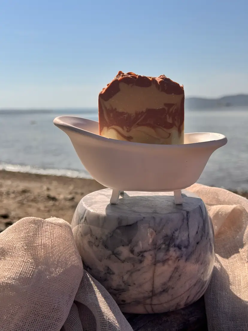 🖤 Product Details: Inspired by vintage clawfoot bathtubs Perfect fit for BliN soaps & other artisan bars Material: Resin Crete Size: 5.91 x 2.68 x 2.48 inches Perfectly fits standard BliN soap bars Available in standard finishes or made-to-order colors by request