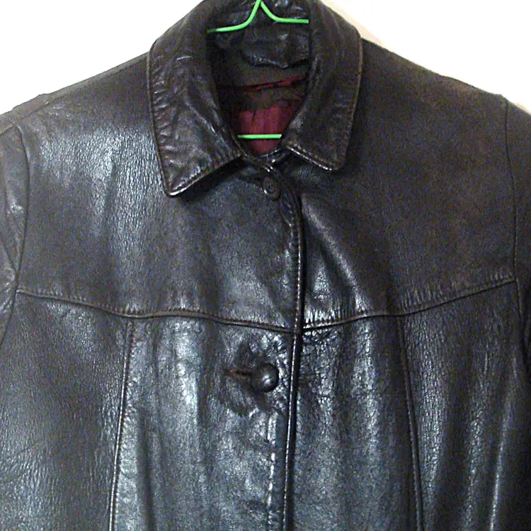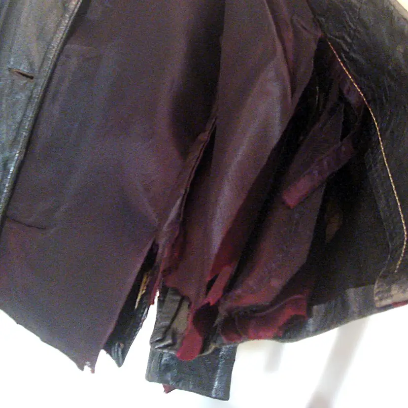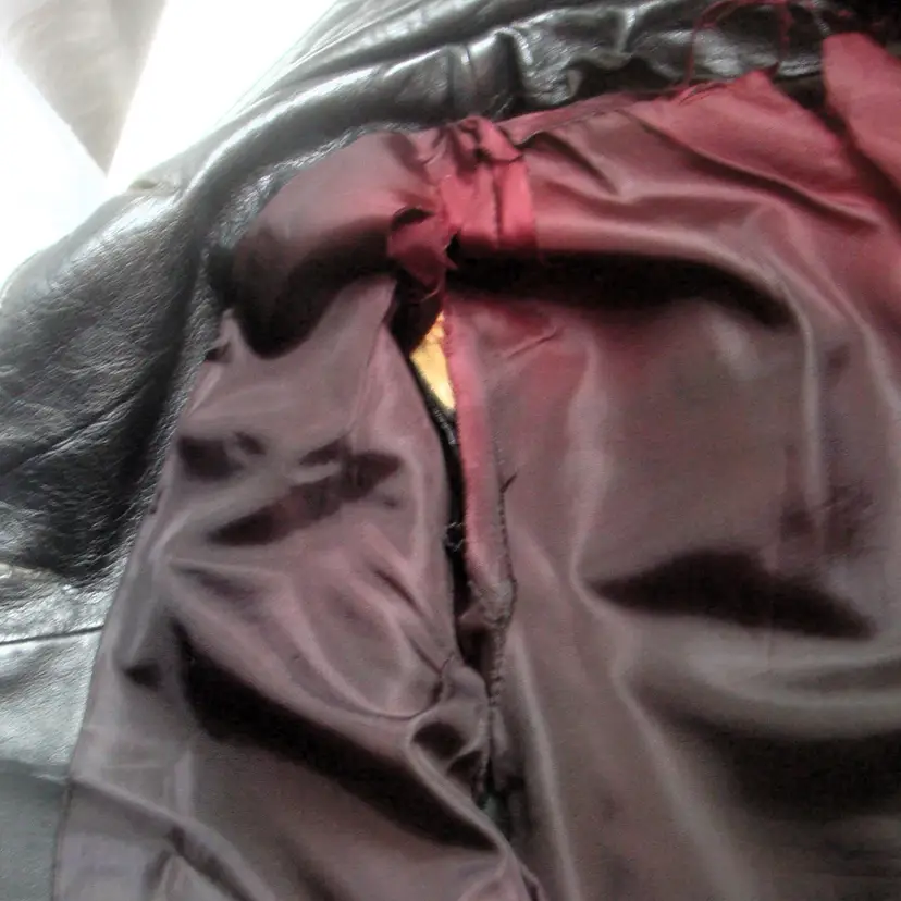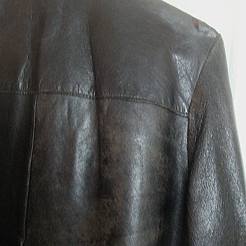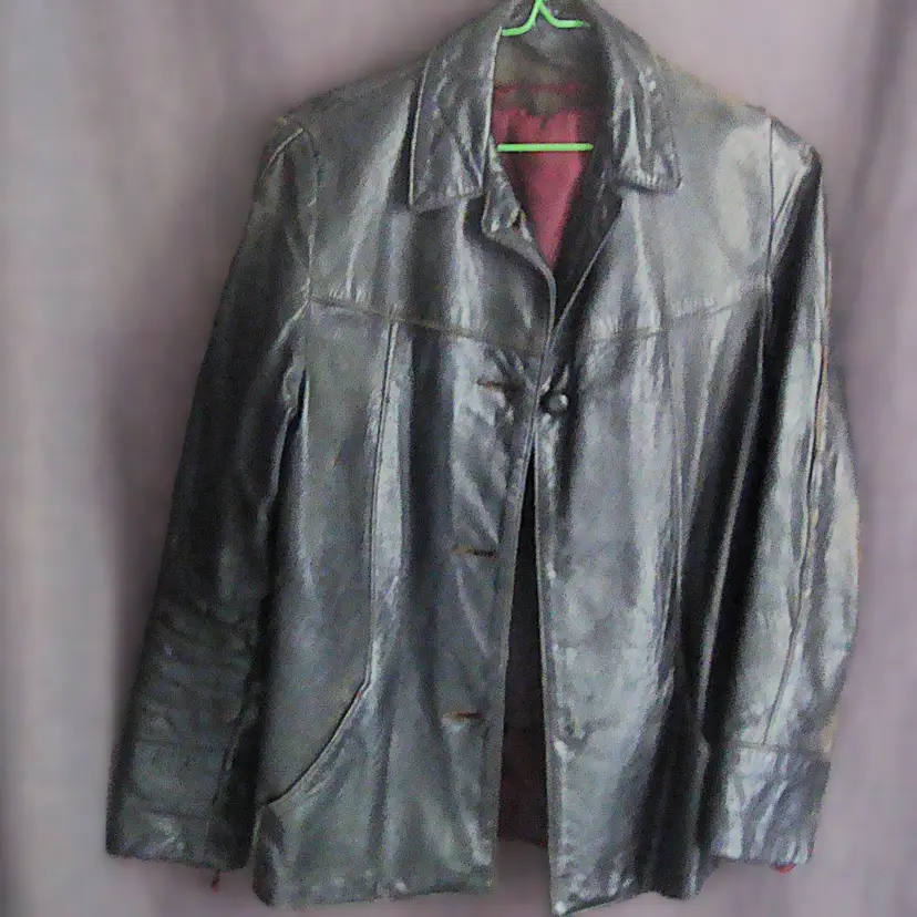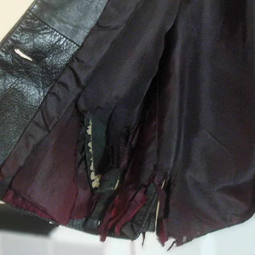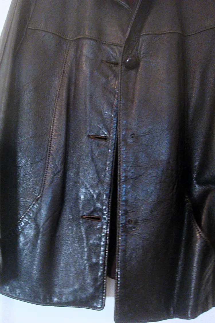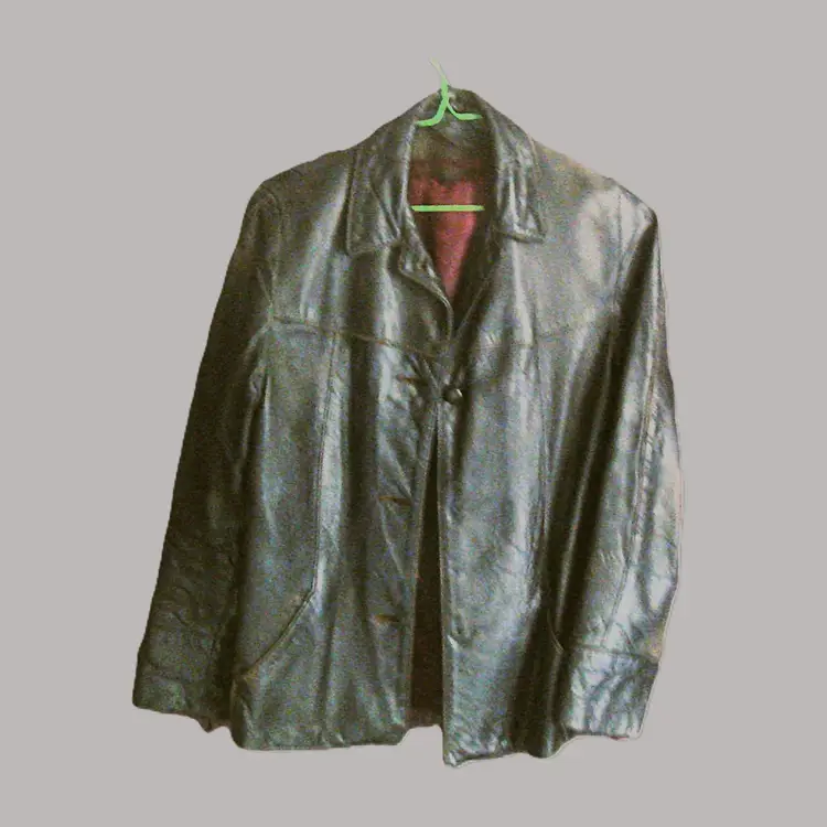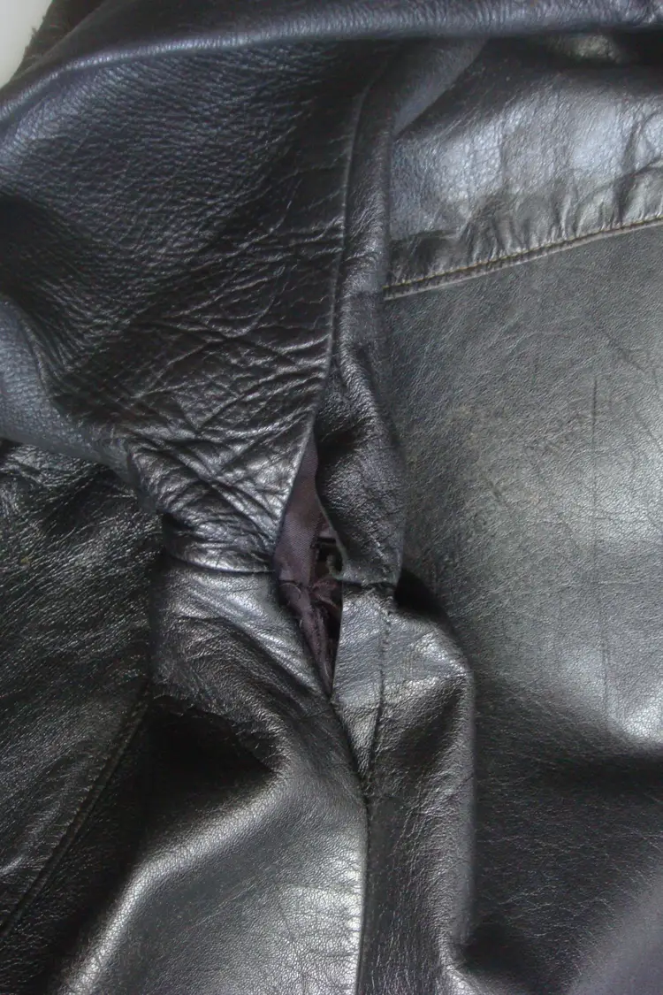 Authentic wear with split leather, discoloration; ragged, faded lining. See photos for condition. Top 2 buttons only. Size: XS/S approx. No label, size tag. Pre-1990s.