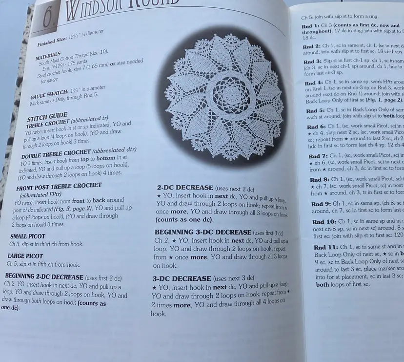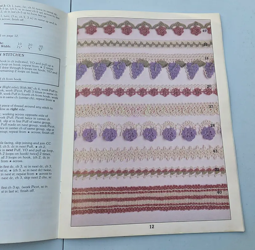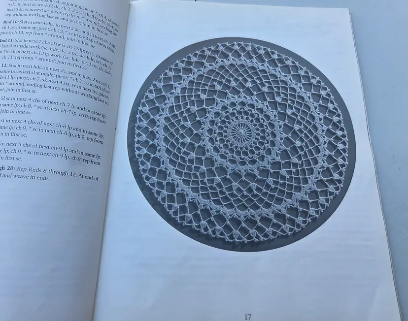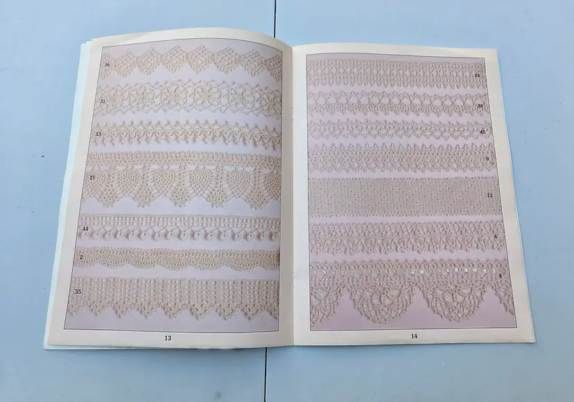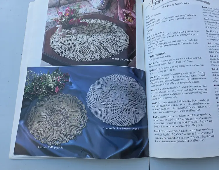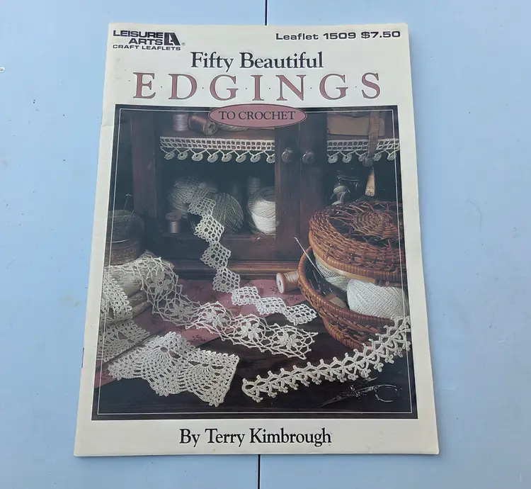 Two Leisure Arts and one American School of Needlework with instructions for doilies and crocheted edgings. Some browning on some of the bottoms of the pages, but overall in good usable condition.