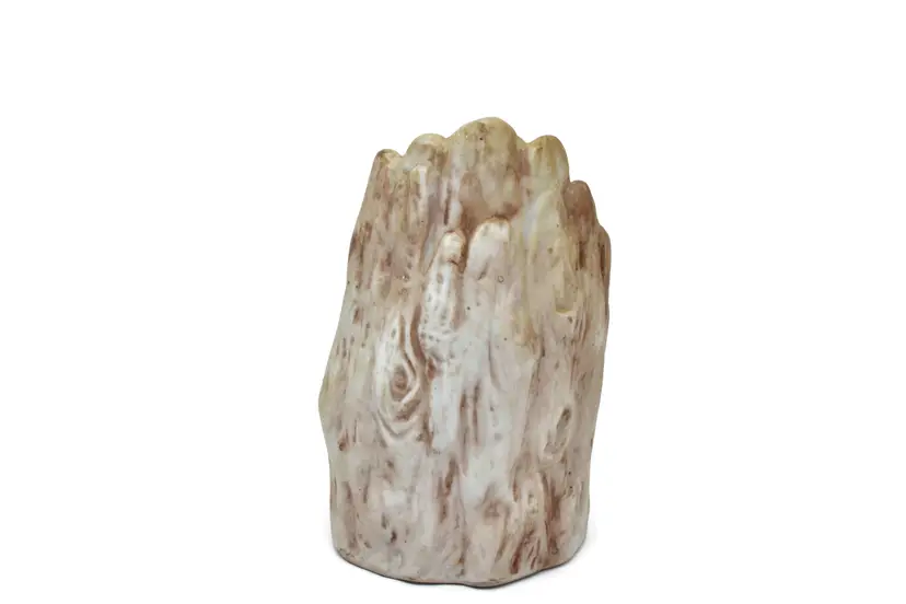 This piece is about 4.75 inches tall x about 3" wide and x about 3" deep. It weighs about 10 oz. It has an overall matte look and feel.