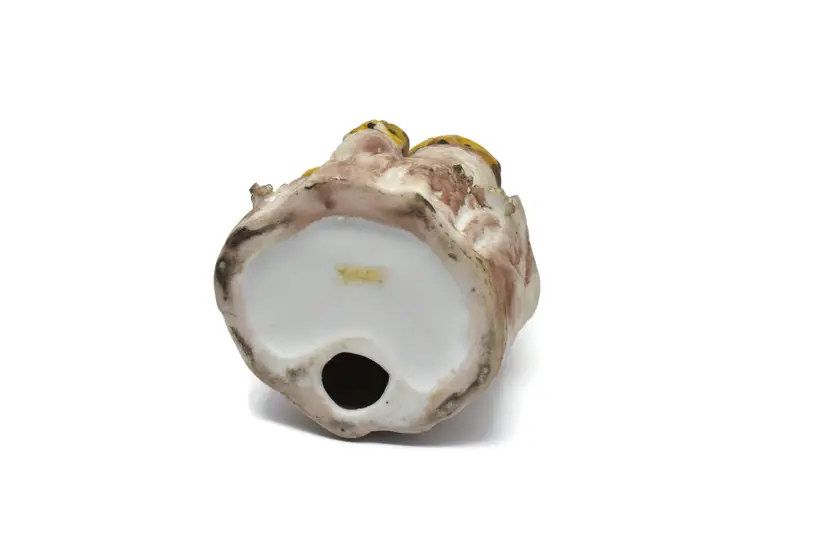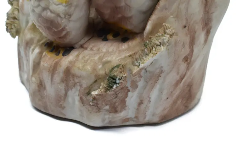 There are no cracks, the is faint minor chipping around the 'greenery' (see last photo).