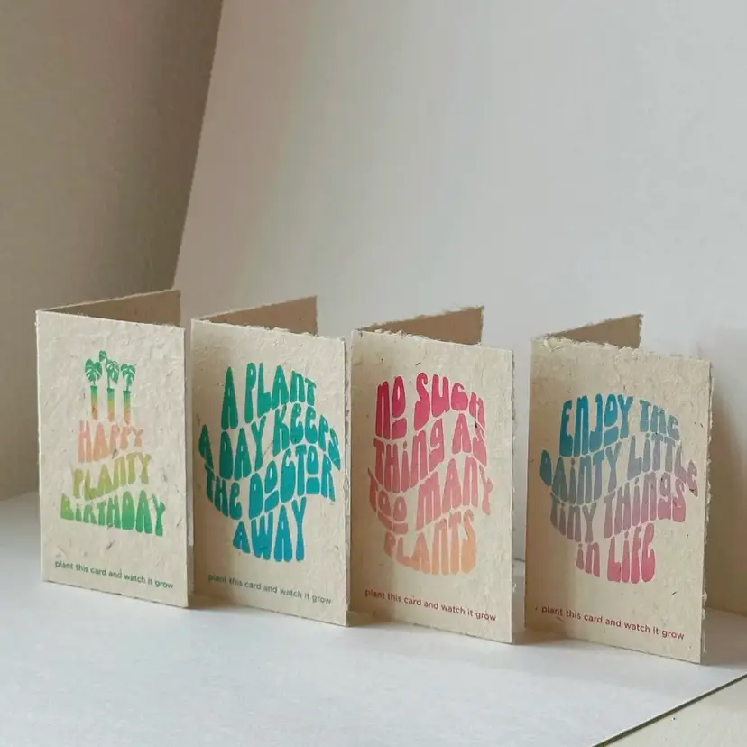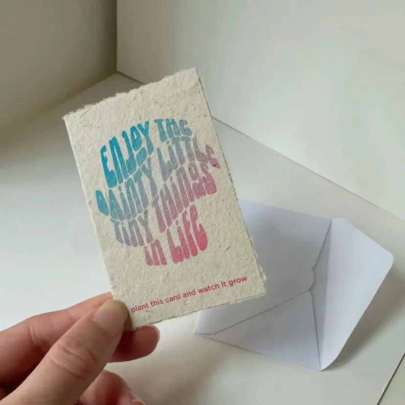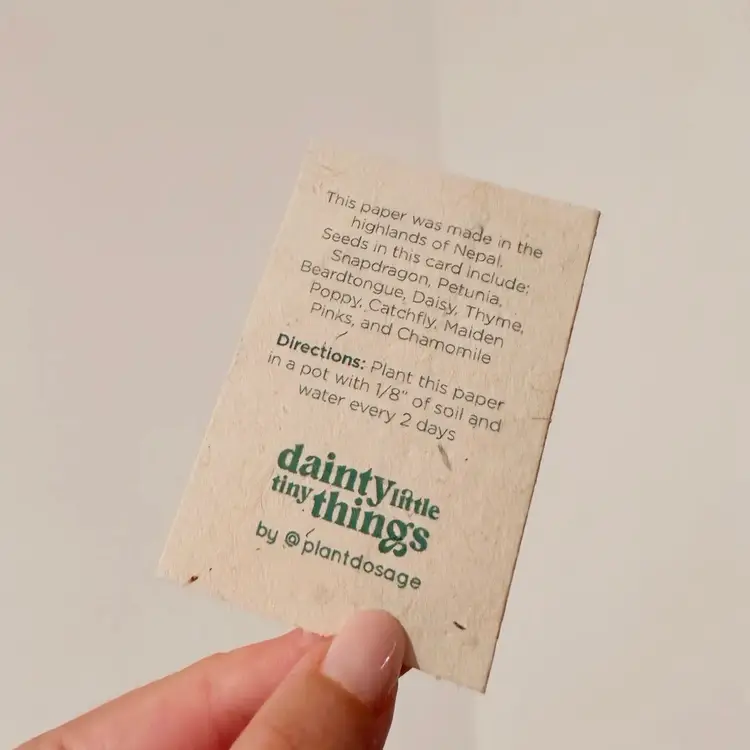 Comes packaged with a tiny envelope and a clear pocket sleeve for protection Cards are handmade with real seeds that you can plant! Each envelope can fit a gift card