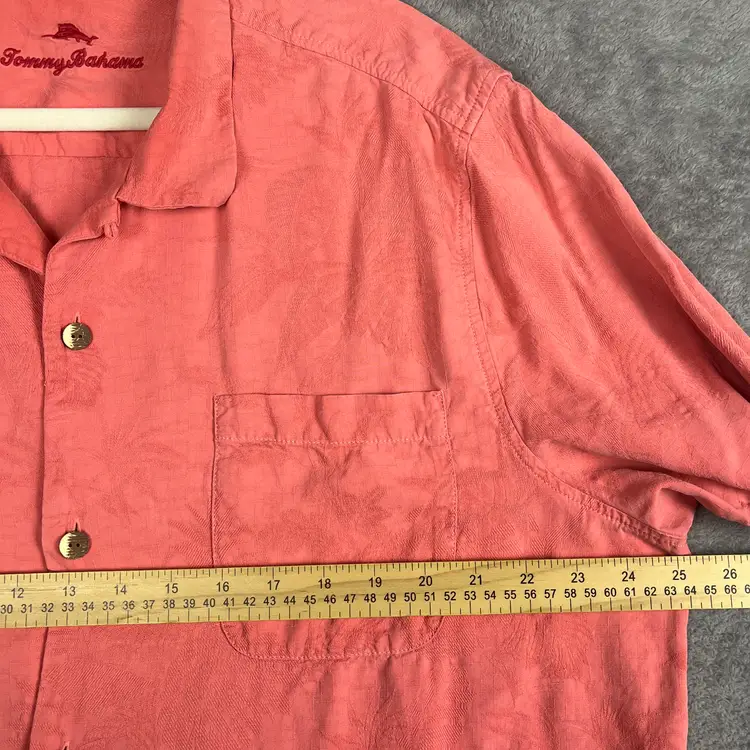 A true Tommy Bahama classic—this 100% silk camp shirt captures the laid-back luxury of island living. The jacquard palm leaf pattern adds depth and texture to the rich coral hue, creating a look that feels both vibrant and effortlessly refined. Perfect for seaside dinners, weekend getaways, or simply bringing a little sunshine to your day.