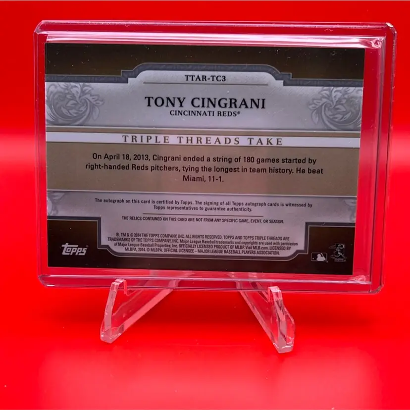 Tony Cingrani 2014 Topps Triple Threads Take Auto Relic 4/9 Cincinnati Reds