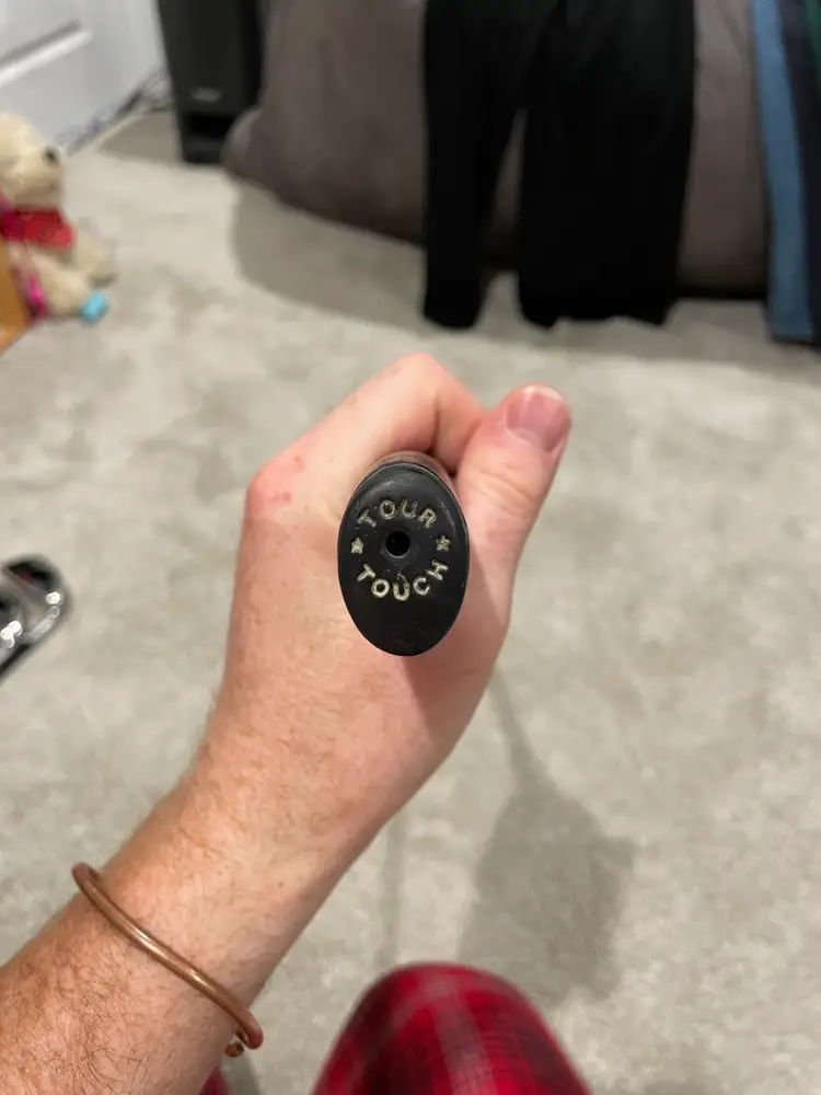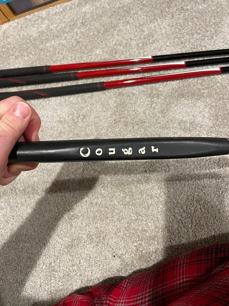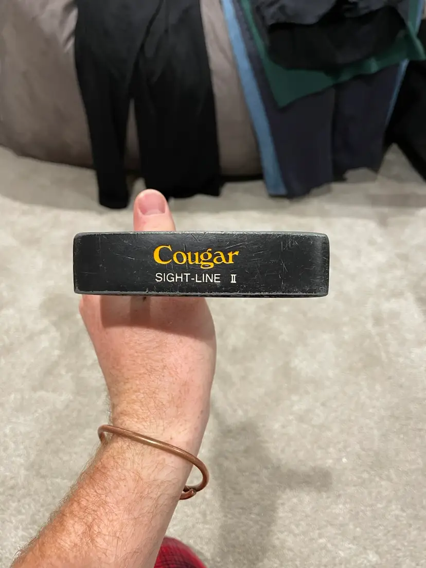 Cougar Sightline II Blade putter with T alignment on top line, toe hang. TT Steel shaft with Cougar branded Tour Touch Grip