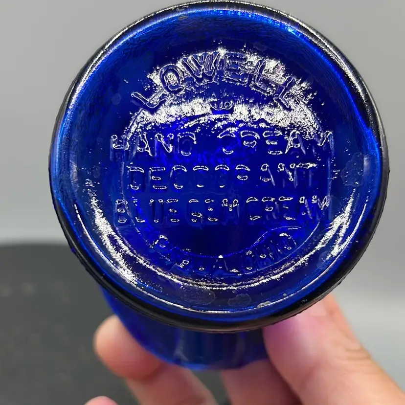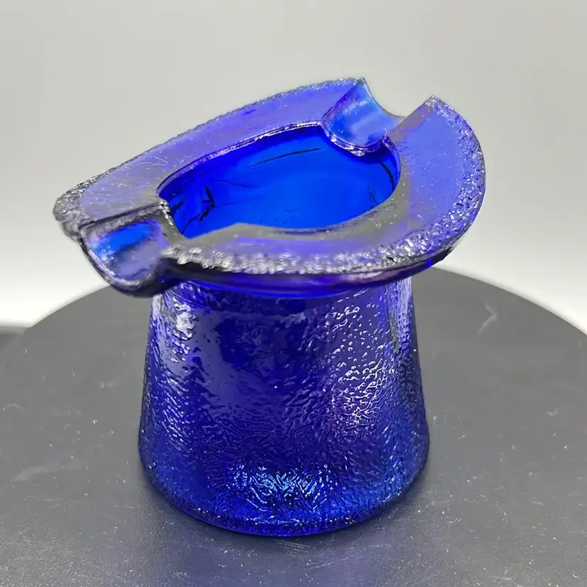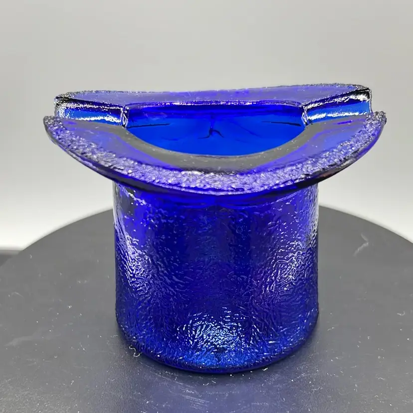 Vintage Lowell Hand Cream Cobalt Blue Glass Top Hat Ashtray 2-1/4"