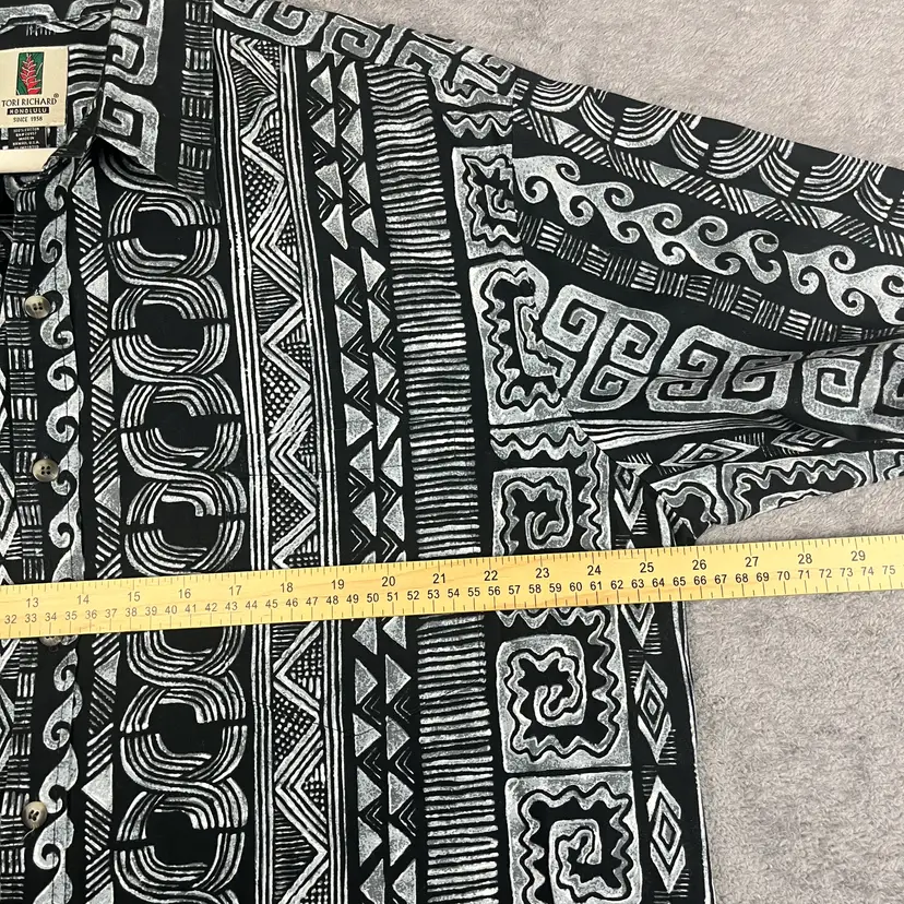 A timeless island classic from Tori Richard Honolulu, this beautifully detailed shirt features a bold black and white tribal-inspired print, expertly balanced for an artful and refined island look. Made in Hawaii from 100% cotton, it captures the spirit of resort wear—comfortable, breathable, and elevated.