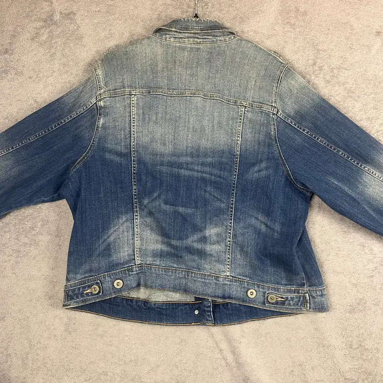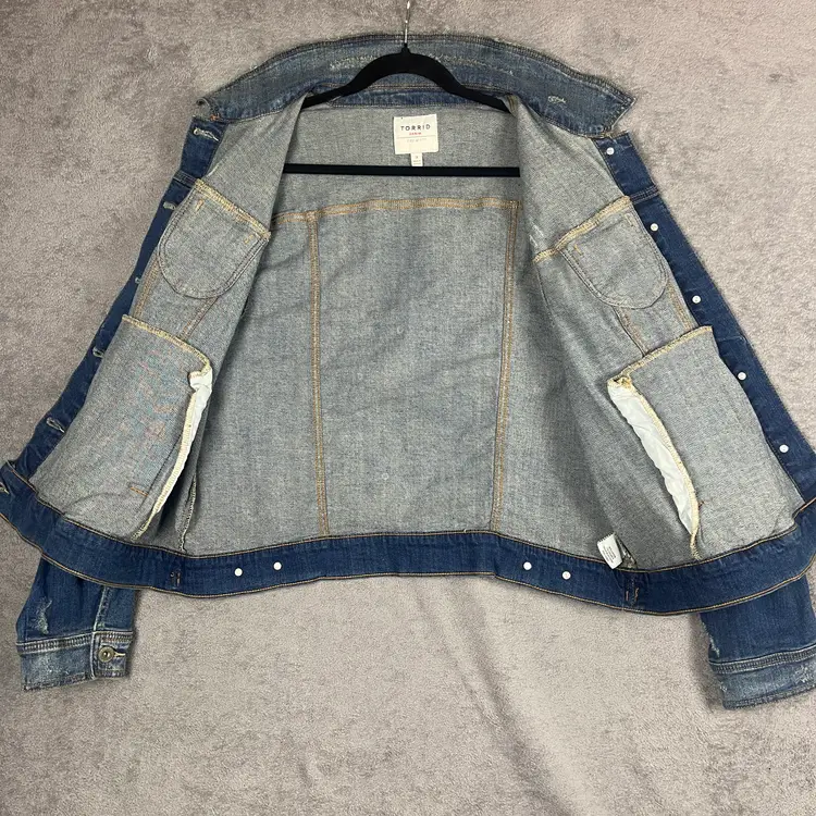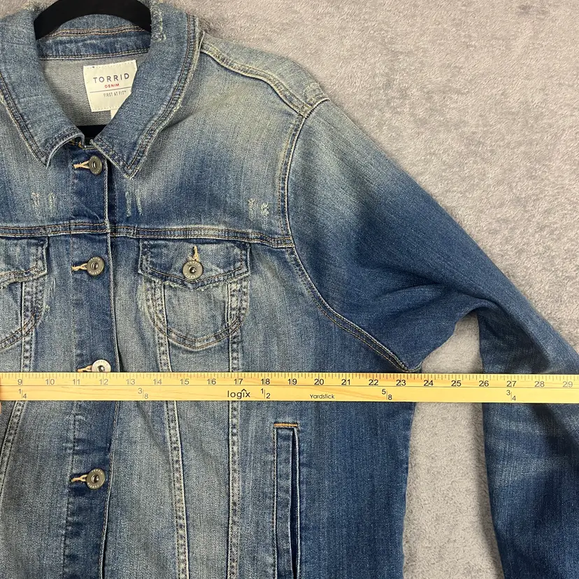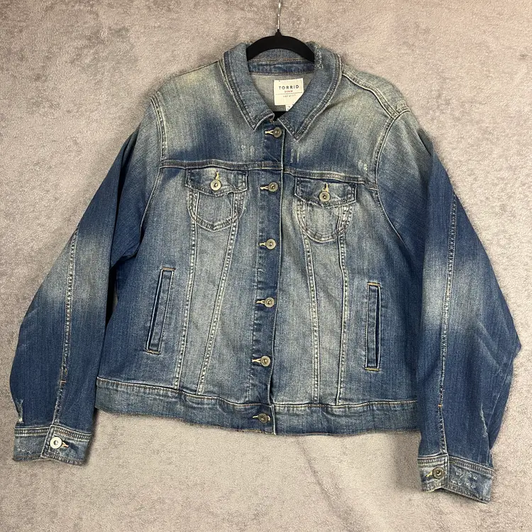 A timeless wardrobe staple, this Torrid denim jacket delivers the perfect balance of structure and softness. Crafted with Torrid’s signature First at Fit™ design, it’s made to flatter with gentle shaping through the shoulders and an easy, relaxed drape through the body. The medium blue wash with subtle fading and whiskering adds a touch of casual cool that works in every season.