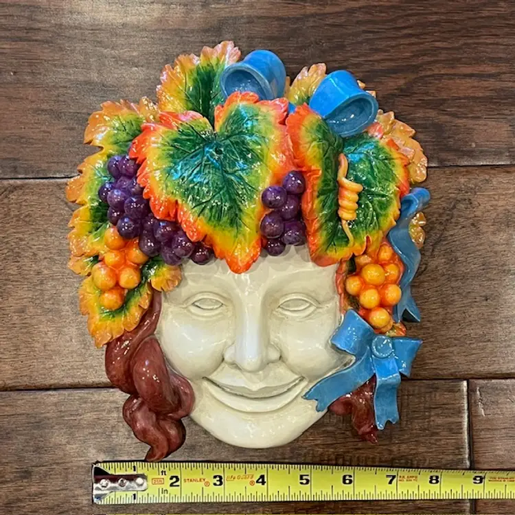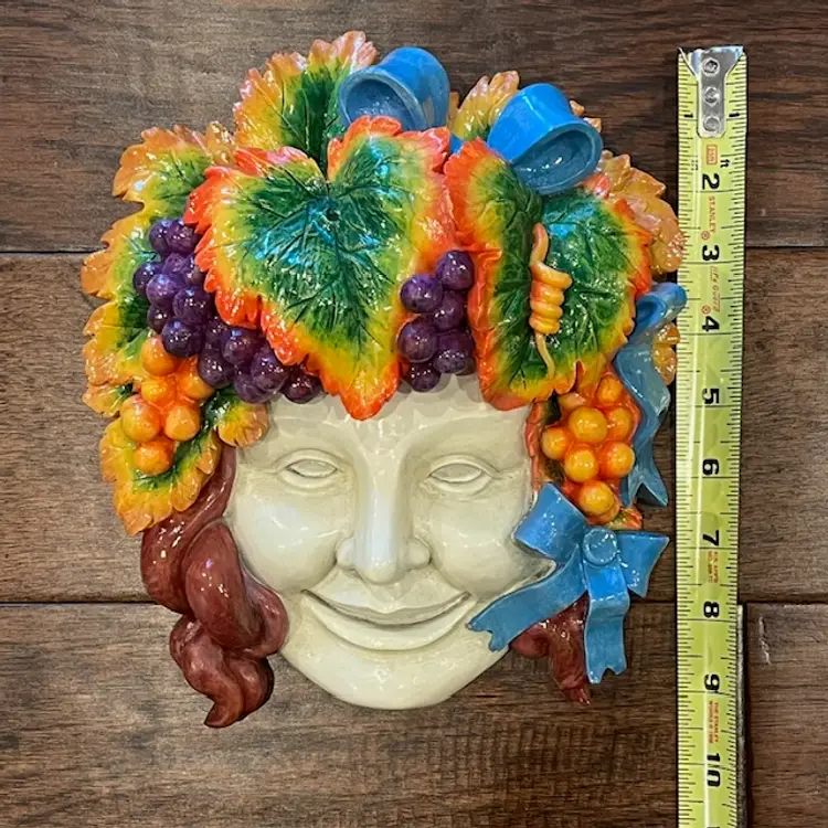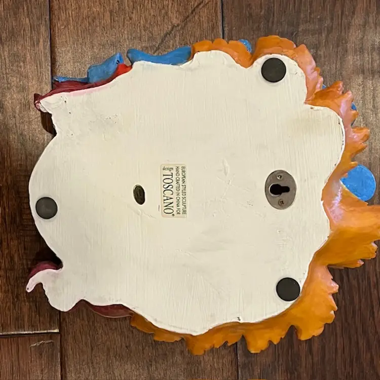 Add some fun to your wall or outdoor patio. NOS sculpture is brightly painted with no damage. Approx 8" x 10" substantial weight so will last.