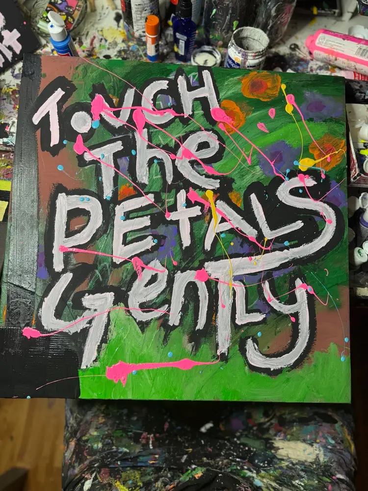 “Touch the Pedals Gently” A whisper softens even the heaviest silence. 30x30x2 Acrylic on Canvas Original, One of One — No Prints