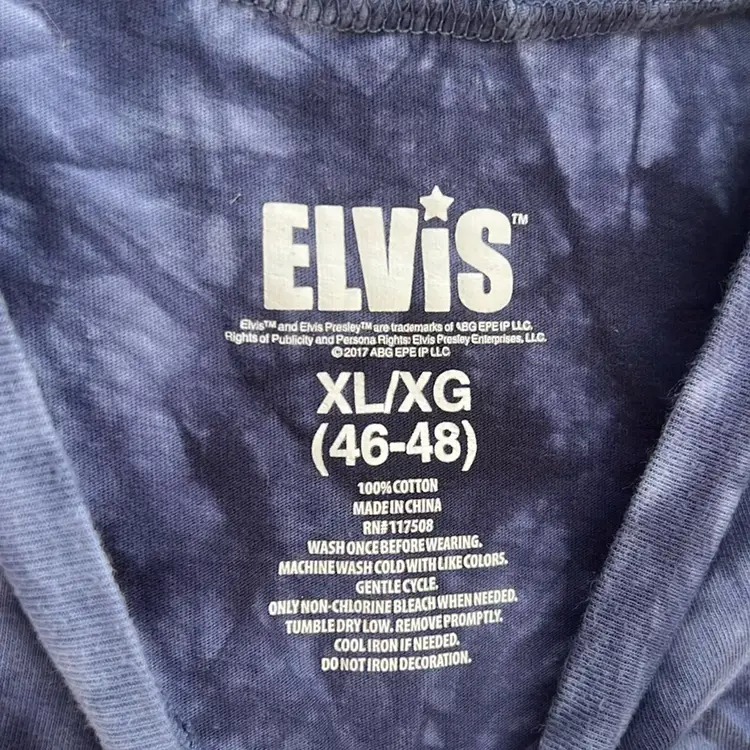 Two-tone blue tie-dye Elvis Presley sleeveless shirt. Size extra large. Passion tea. Pit pit is 22 inches length is 25 1/2 inches.