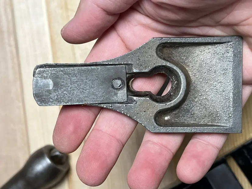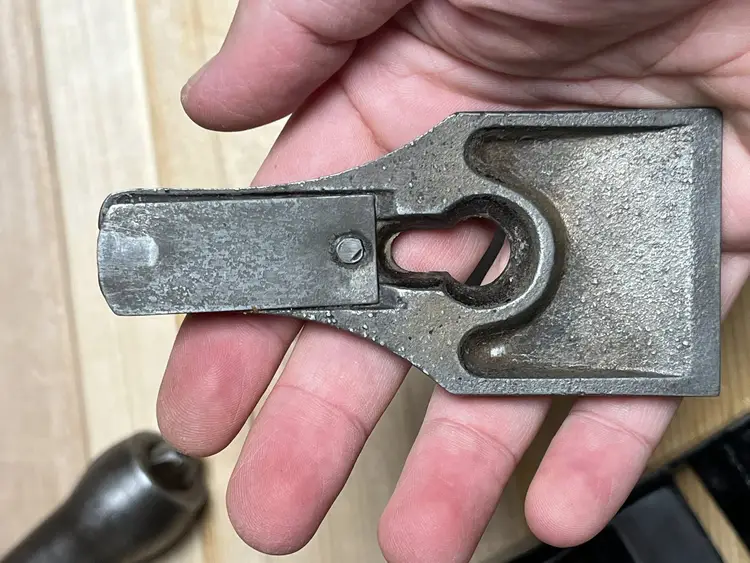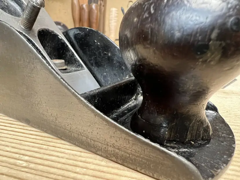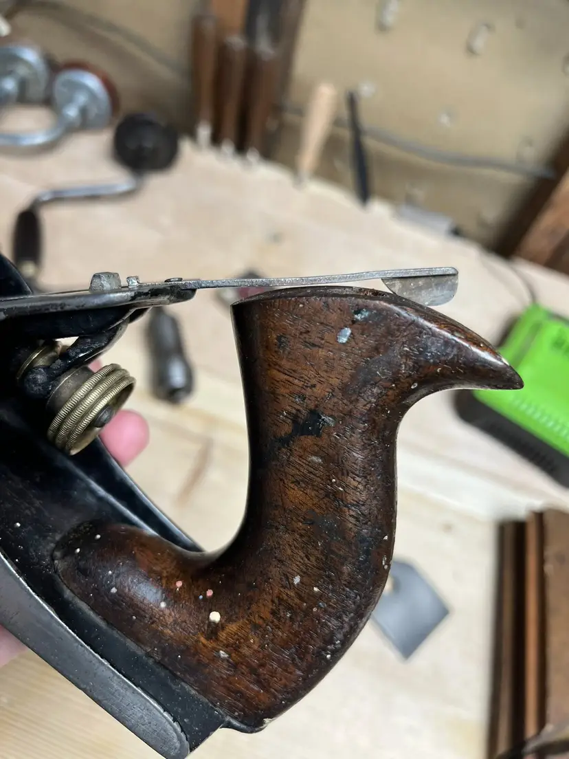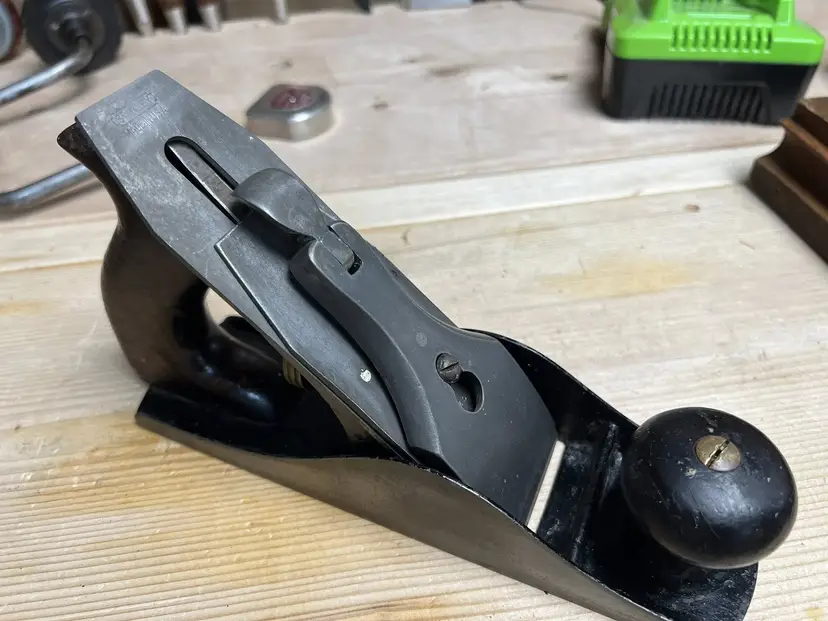 The body is a type 4, the frog is type 5, and the rest of the parts are consistent with 4 or 5. Not sure if the plane was born this way or reassembled from parts sometime in the last century or so. It's had a light cleaning and waxing, but otherwise in "as found" condition.